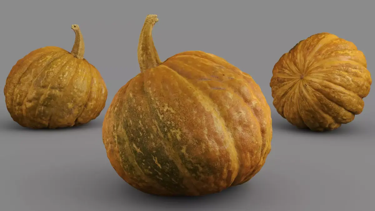 Detailed Geometry: The pumpkin features highly detailed ridges, creases, and natural imperfections, ensuring an authentic and lifelike appearance.