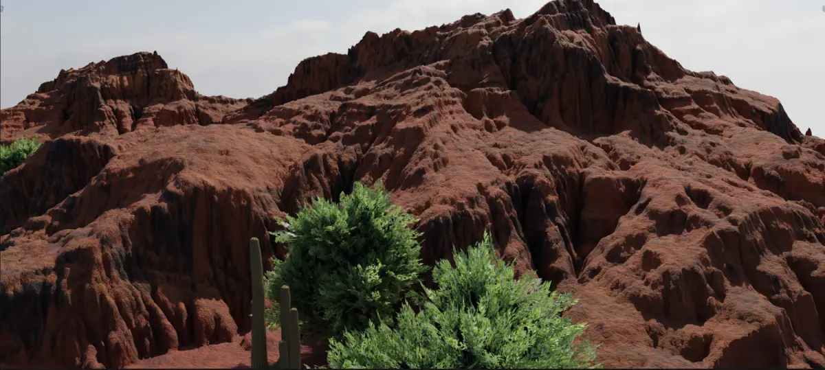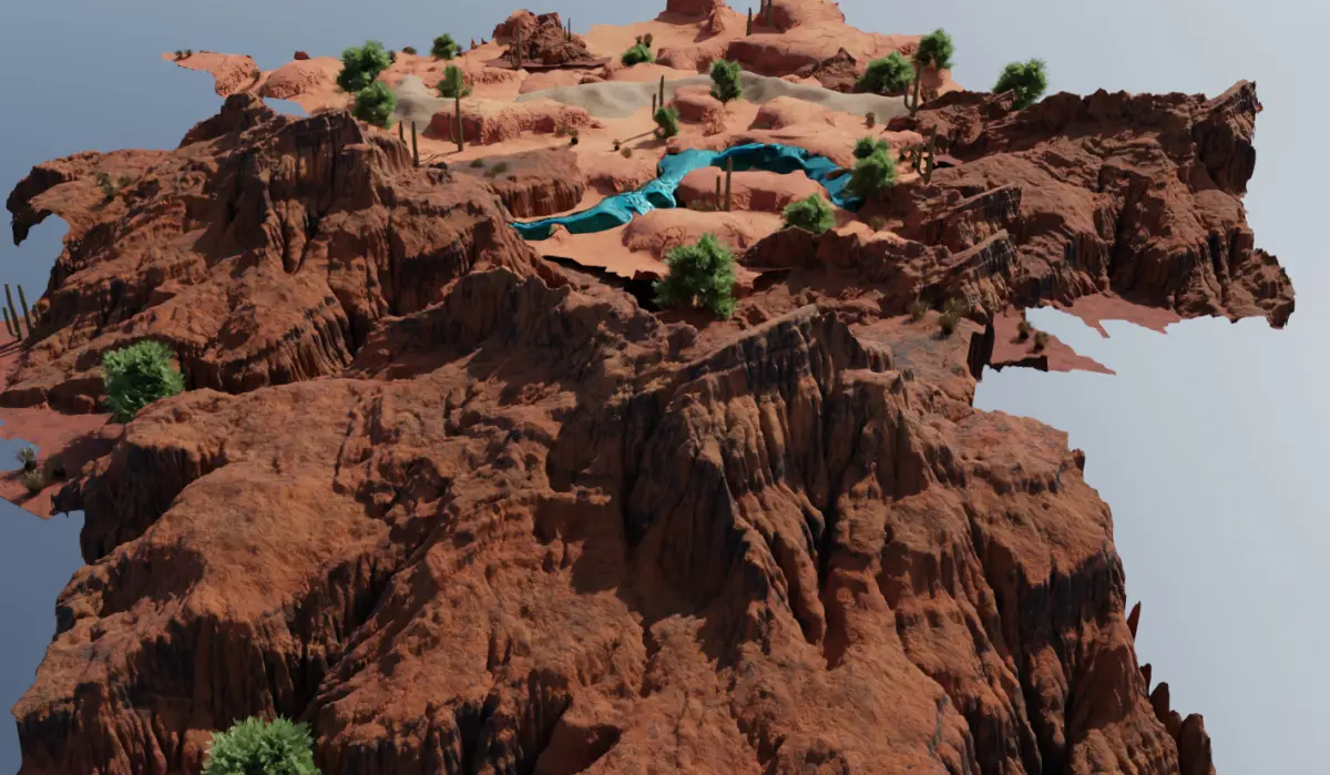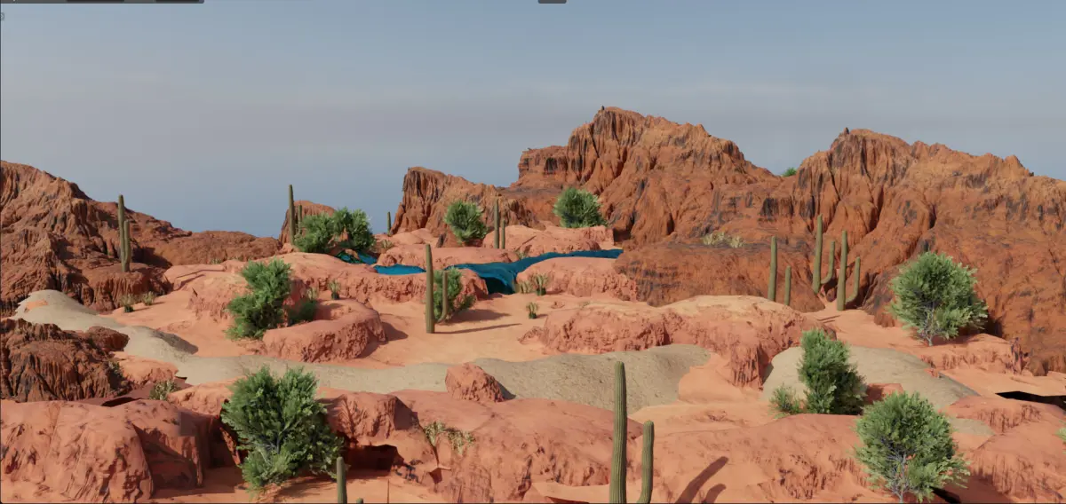 Includes desert-style terrain with cliffs, valleys, and vegetation
