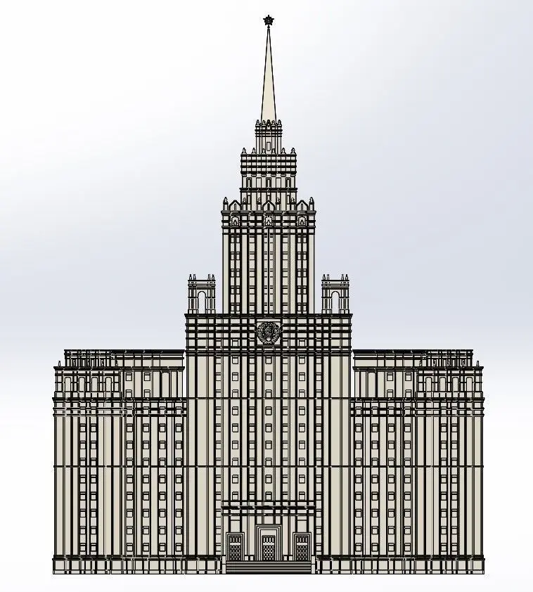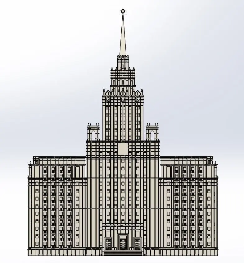 High-rise at the Red Gate on Sadovaya-Spasskaya street, 21. The solid-state model is built in SolidWorks. Dimensions of the model 3060x2956 mm. Height-3967 mm. Saved in step and iges formats. stl.
