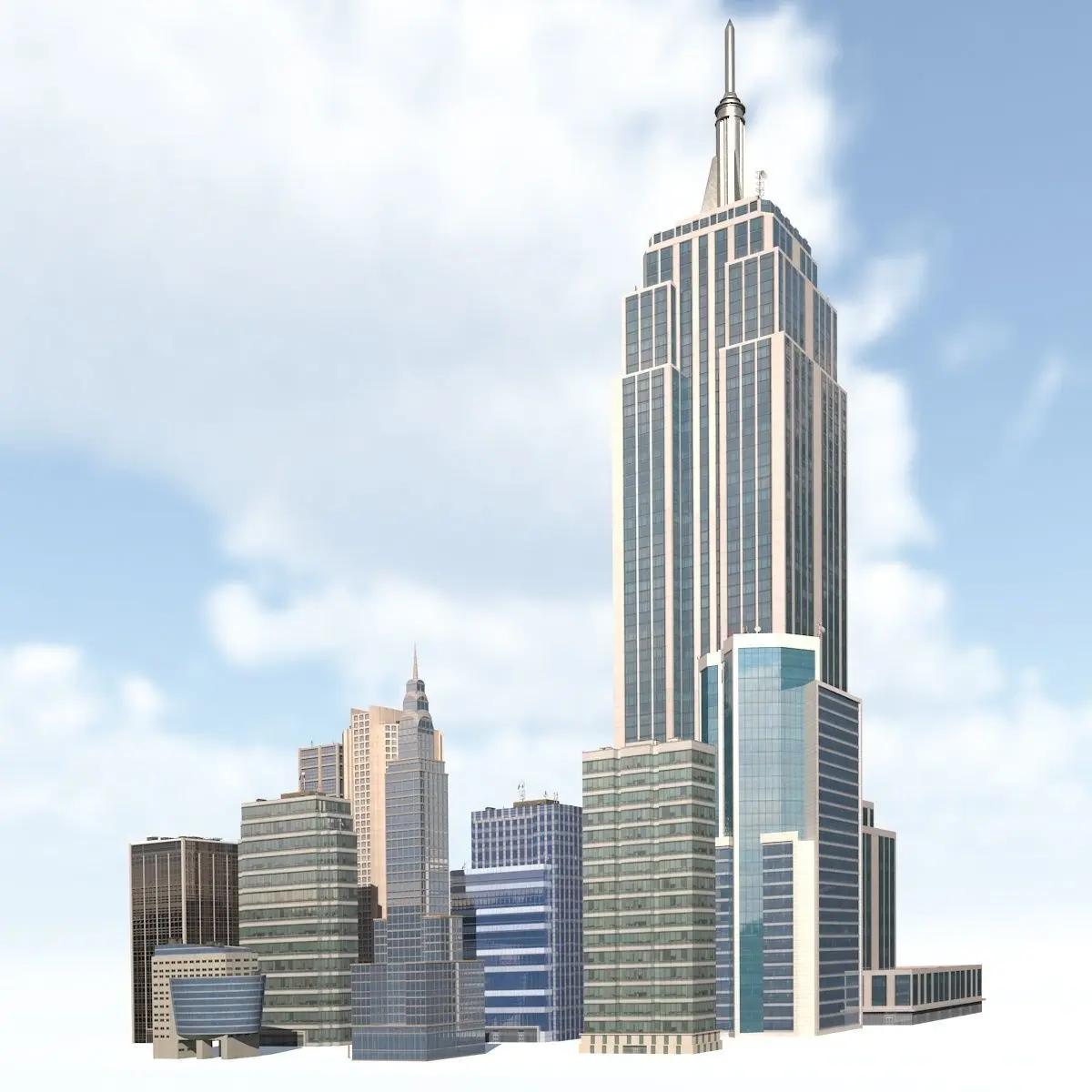 Low poly 3d models of 10 Skyscrapers buildings with roof detail.