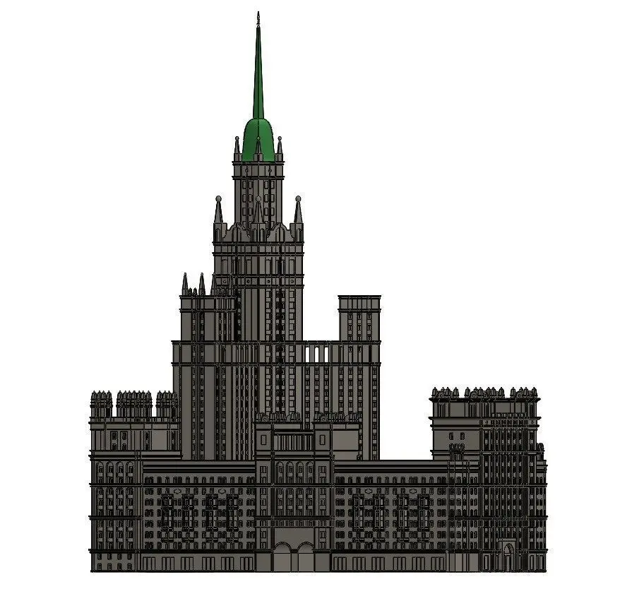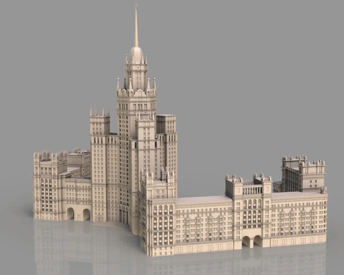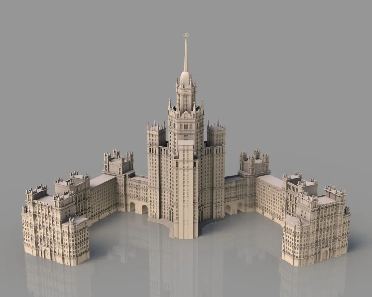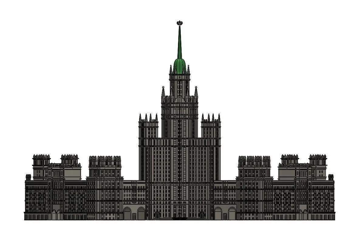 High-rise on Kotelnicheskaya embankment. City of Moscow, Russia. The dimensions of the solid-state model of the building are 6508 x 3387 mm, height 4181 mm in formats sldprt, stp, stl