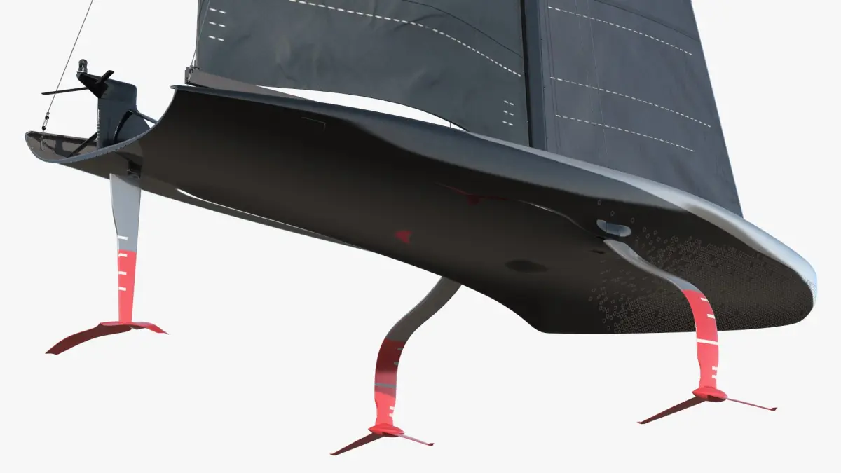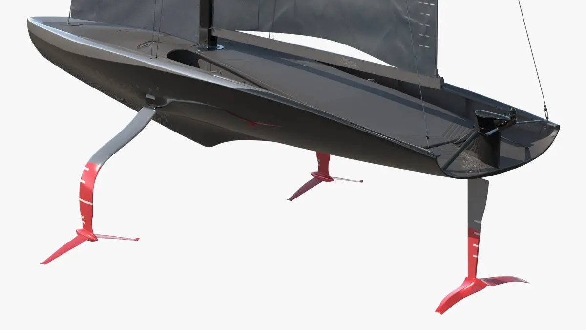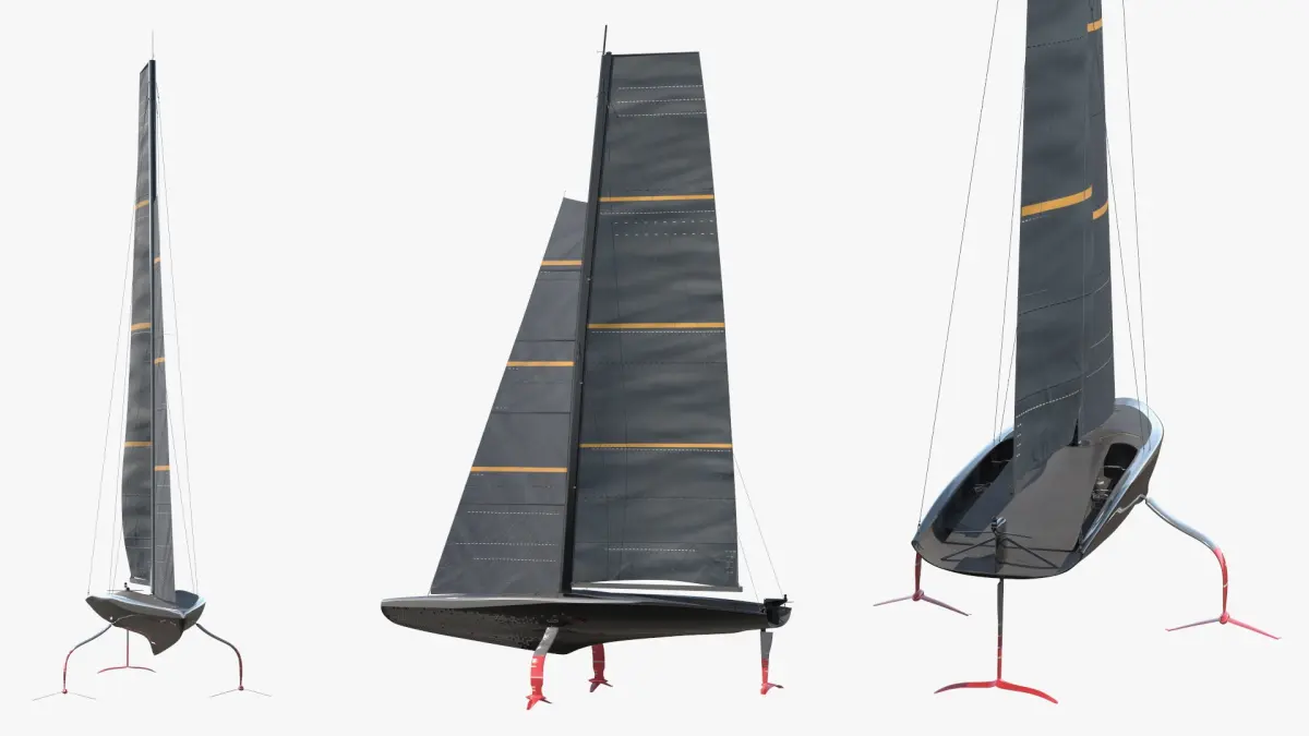 High-Speed Foiling Regatta Yacht Black is a three-dimensional model of luxury racing sailboat, that is a high-performance foiling monohull (hydrofoil) yacht designed for elite sailing competitions.