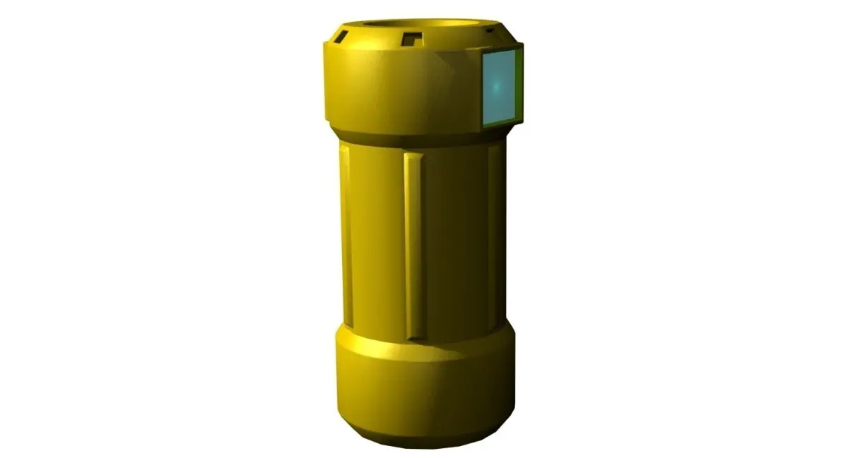 A high-tech/modern/futuristic barrel made of plastic material and with digital displays on both side to inform about its content. Base plastic procedural material is provided as well as the reflective material and the self-illuminated material for the digital displays. All materials are combined in a Multi/Sub-Object material with their corresponding UV. Both digital displays have their own Omni light to simulate the glow of the display.