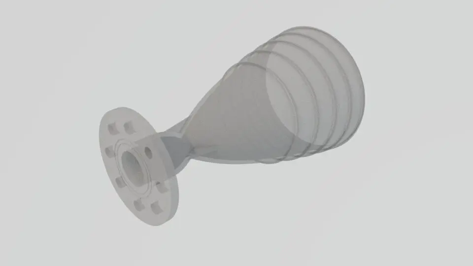 High temperature nitrogen laval nozzel rocket engine with nurbs (original parametric design file)provided. They are in maya file and iges files.This is a real engine with input nitrogen temperature at 1800k and with pressure of 25Mpa.This nozzle could be a high temperature alloy 3d printed or milled product. You can prototype it easily with these mesh files.The recommand material of manufacture is tungsten.