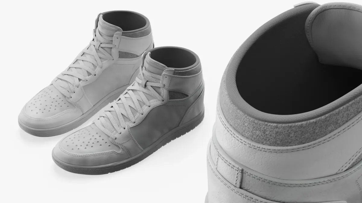 High Top Retro Sports Sneakers White is a three-dimensional model of high-top sneakers, known for their versatile design and streetwear appeal, making them a staple in casual fashion.