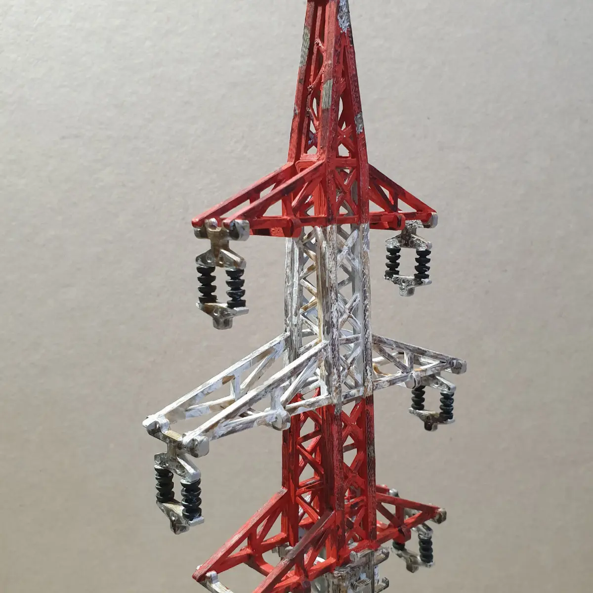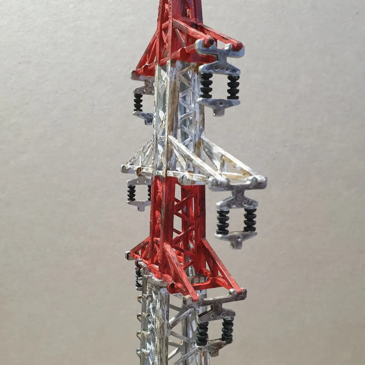 today I have prepared one project for you, which we will certainly encounter every day. High voltage column for the transition of electric current.It is a jigsaw puzzle that is simply printed flat. No supports, even the part called the insulator can be printed without supports.Although the pole can be assembled without glue, a few drops of super glue are needed for the smallest parts such as insulators.The basic size is 300 mm, laid out so that the parts can be printed on a 200 mm size pad. I think for wargames and dioramas in 28 mm scale. Of course, it can be enlarged in the slicer.The model contains holes in the insulators for threading, for example, string or wire to imitate wiring.I printed from PLA, on detailed settings. Nothing special.