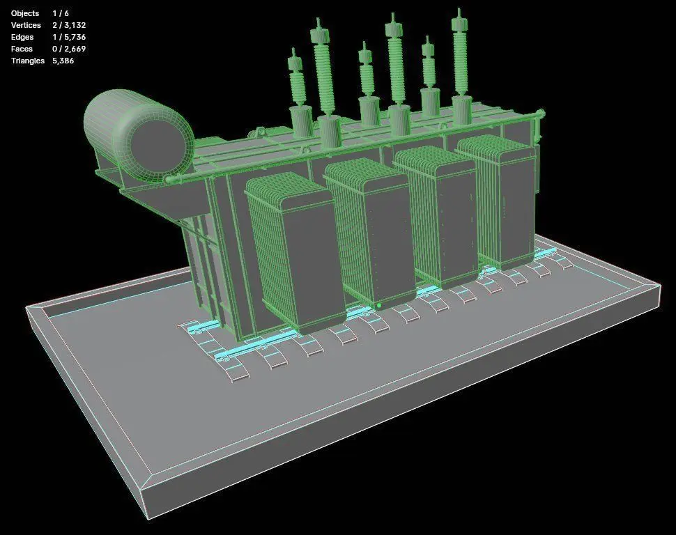 High voltage transformer, part of a set for the Power Plant, the model has its own textures and materials (has two types of textures: clean and dirty). Coal/bio power plant equipment