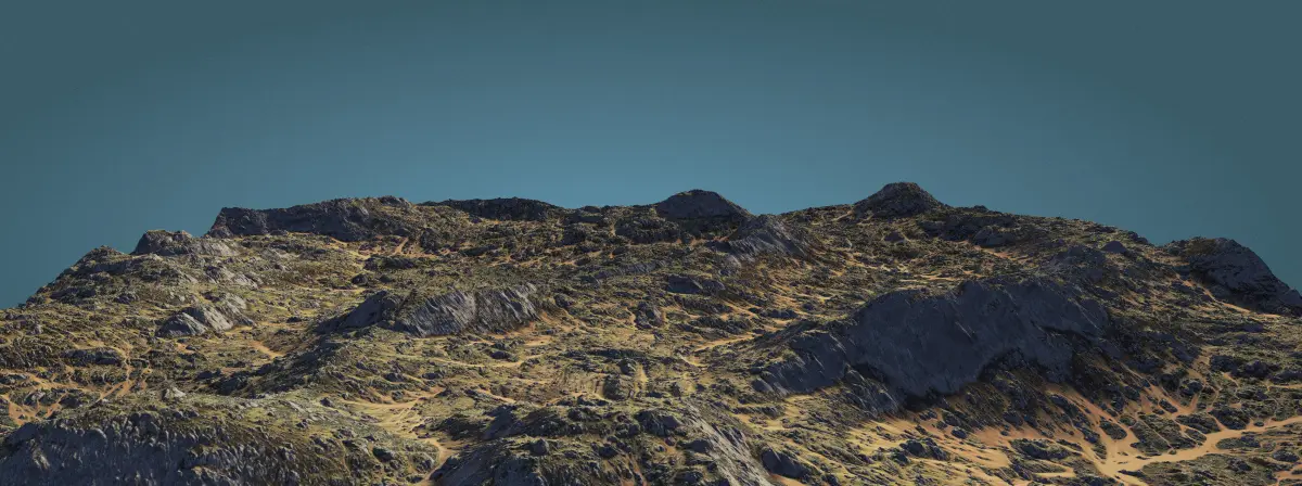 A landscape inspired by highlands, with various hills, mud slides, cliffs, ridges, erosive details etc.