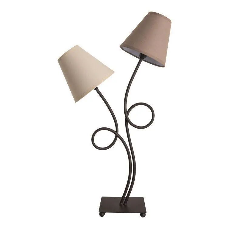 - This Confer 65cm Table Lamp is both elegant and decorative as well as atmospheric. Its exclusive design features two curved metal arms which lead to high-quality textile shades, in cream and brown. Depending on the occasion, you can choose to bathe your home in warm or cool white light. With an E14 socket, the lamp can take energy-saving light bulbs, lighting up your home in a more energy-saving way. It has an overall height of 65cm, and can be operated easily via a rocker switch.