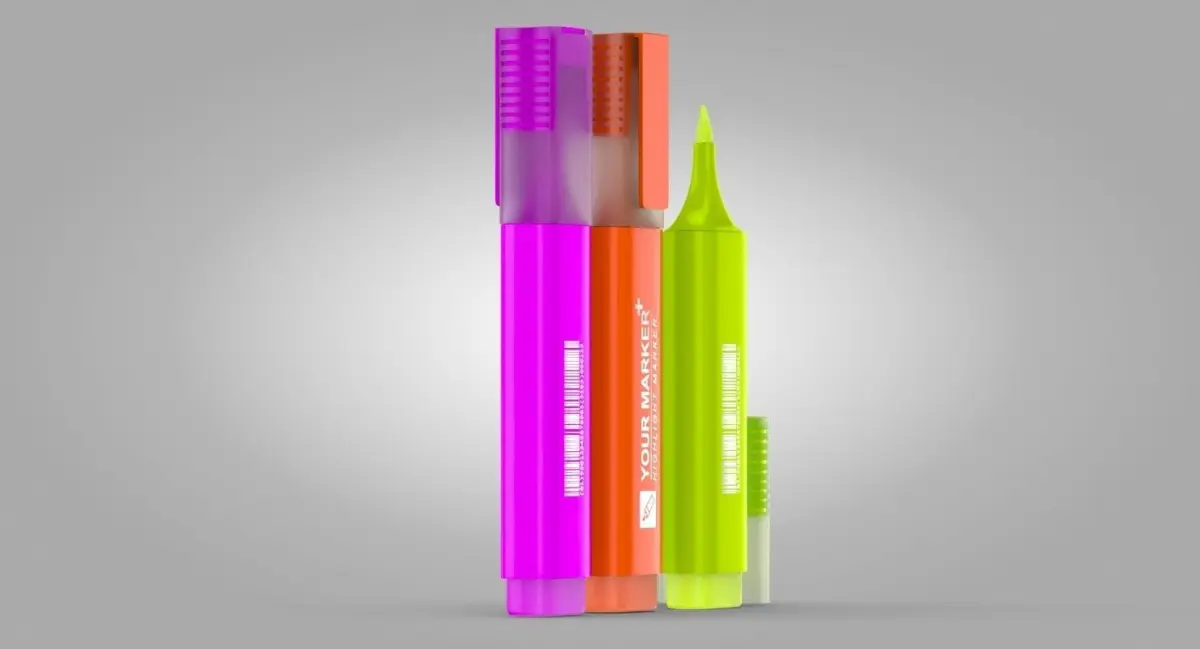Highlighter Markers is a high quality, photo real model that will enhance detail and realism to any of your rendering projects. The model has a fully textured, detailed design that allows for close-up renders, and was originally modeled in 3ds Max 2014 and rendered with V-Ray