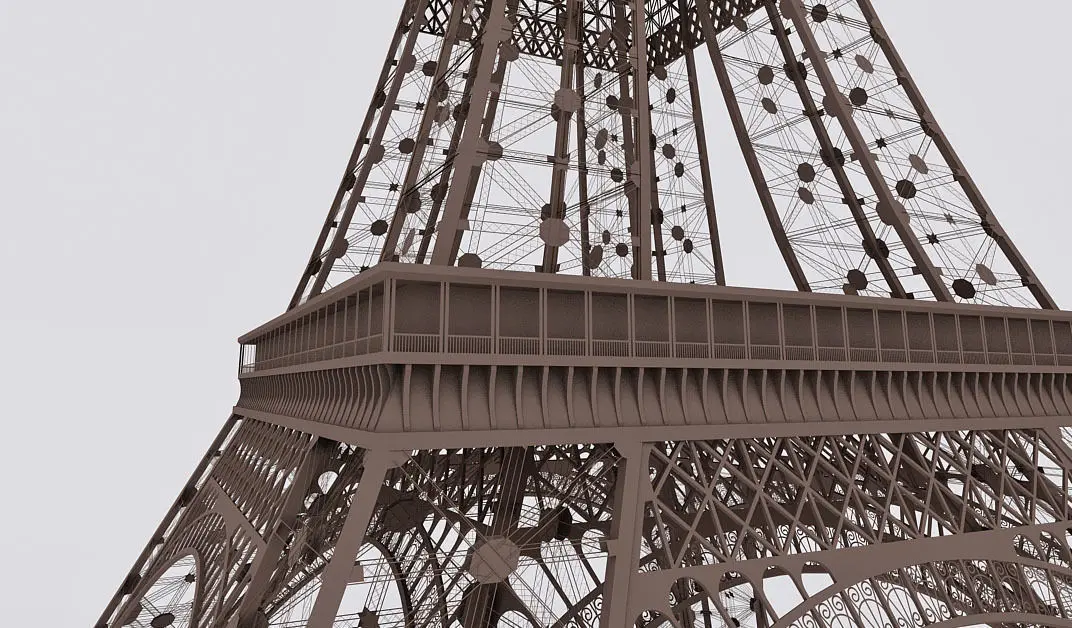 A full 3D representation of the Eiffel Tower.Eiffel Tower a famous wrought-iron lattice tower that is places on the Champ de Mars in Paris, France. The Eiffel Tower construction is named after the engineer Gustave Eiffel.The Eiffel tower has three visitor levels with restaurants on the first and second levels and the top level's upper platform.The highest visitor observation platform accessible to the public in the European Union region.For Paris attractions, French history, architecture European landmarks, Paris architecture attractions, Paris architecture history, Europe architectural art, France architectural constructions, Europe tourist travels, French architecture styles, Paris city constructions, Paris architectural design, French urban architecture, European international tourism, and European tours marketing or advertising projects.
