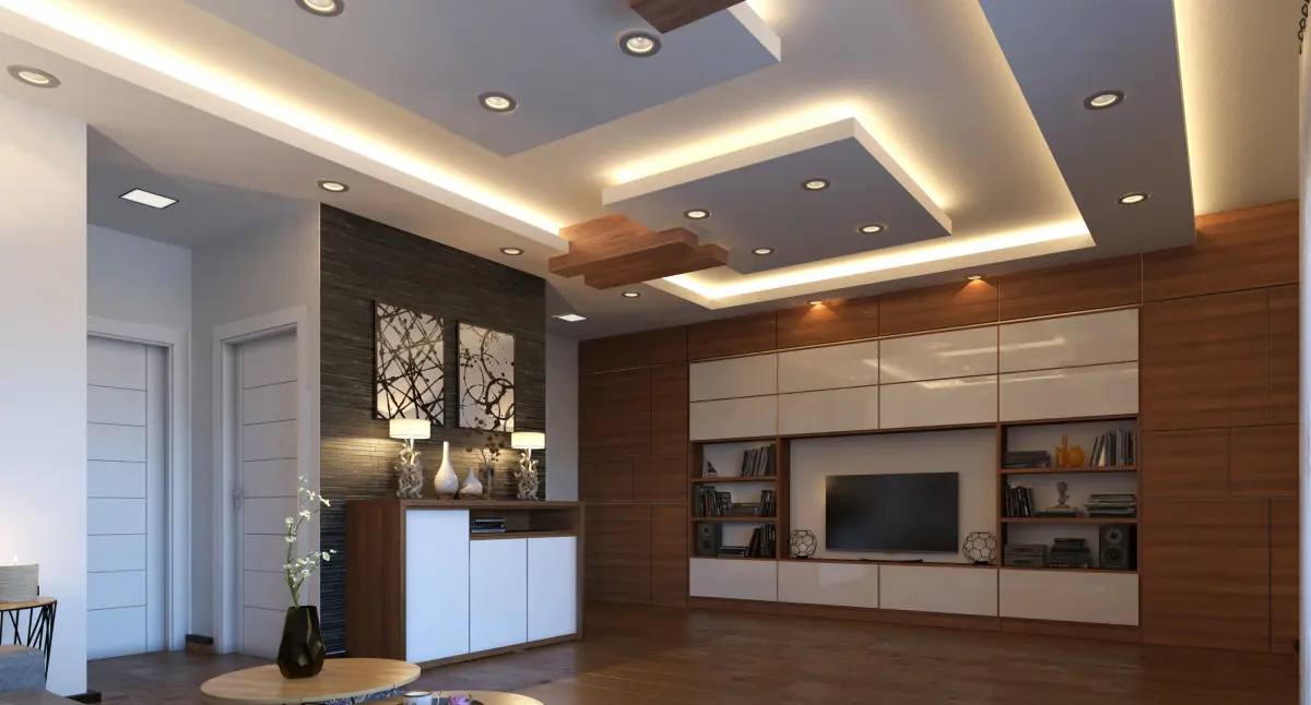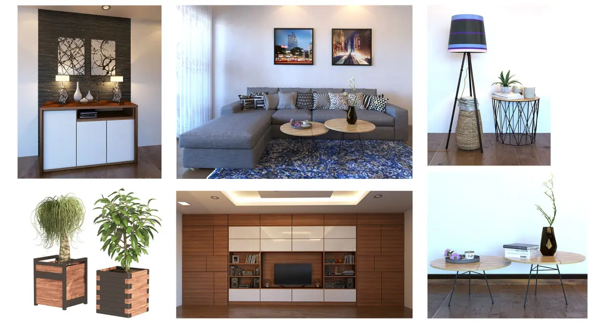Highly detailed interior scene 3d model .interior scene of living room with Tv unit and entrance , is ready for render, you can edit it based on your plan and click the render. all materials, lights and render setting are ready set.