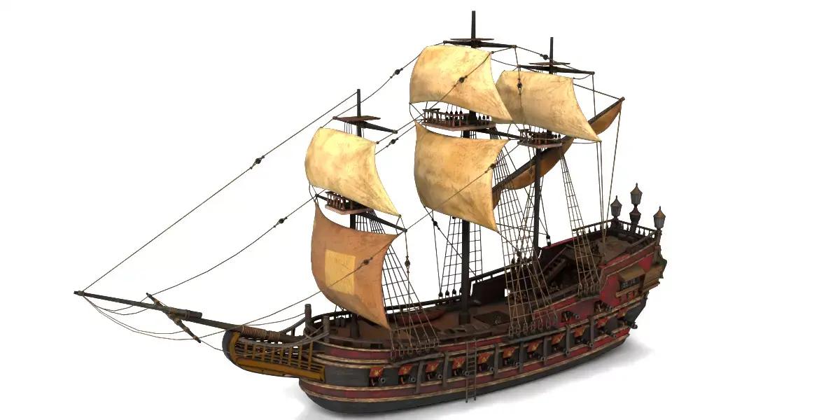 Key Features:– Highly detailed craftsmanship: Includes precise deck planking, realistic cannons, rope rigging, and mast structures.– Authentic pirate-era design: Inspired by legendary galleons and privateer ships from the Golden Age of Piracy.– Multi-level deck system: Features upper, main, and lower decks with realistic layouts and structural accuracy.– Sturdy construction: Built with strong, durable materials for long-lasting display or use in themed setups.– Textured and weathered appearance: Designed to replicate the rugged look of ships that braved high seas and battles.– Detailed accessories: Includes miniature cannons, anchor, lanterns, helm wheel, and other iconic pirate ship elements.– Perfect for display: Ideal for museums, collectors, themed rooms, events, film sets, and decor.– Fantasy and storytelling ready: A great addition for creative scenarios, pirate-themed scenes, or adventurous decor environments.