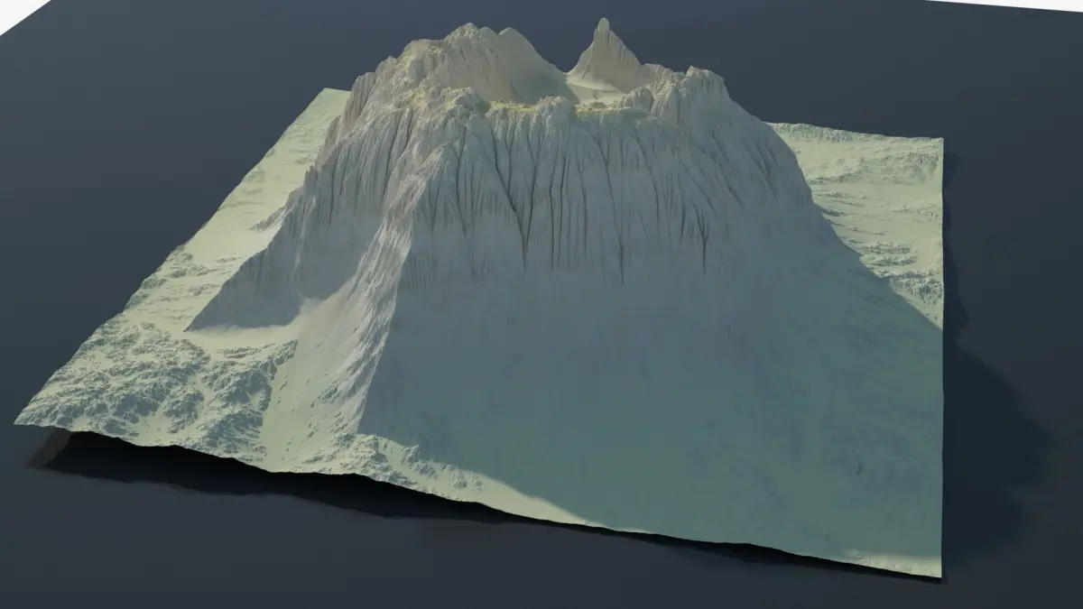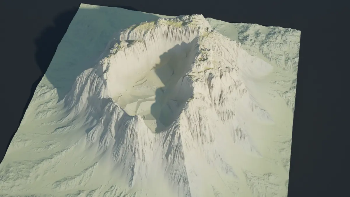 Highly detailed sci-fi rocky volcano with sand deposits.Clean geometry, all quads.