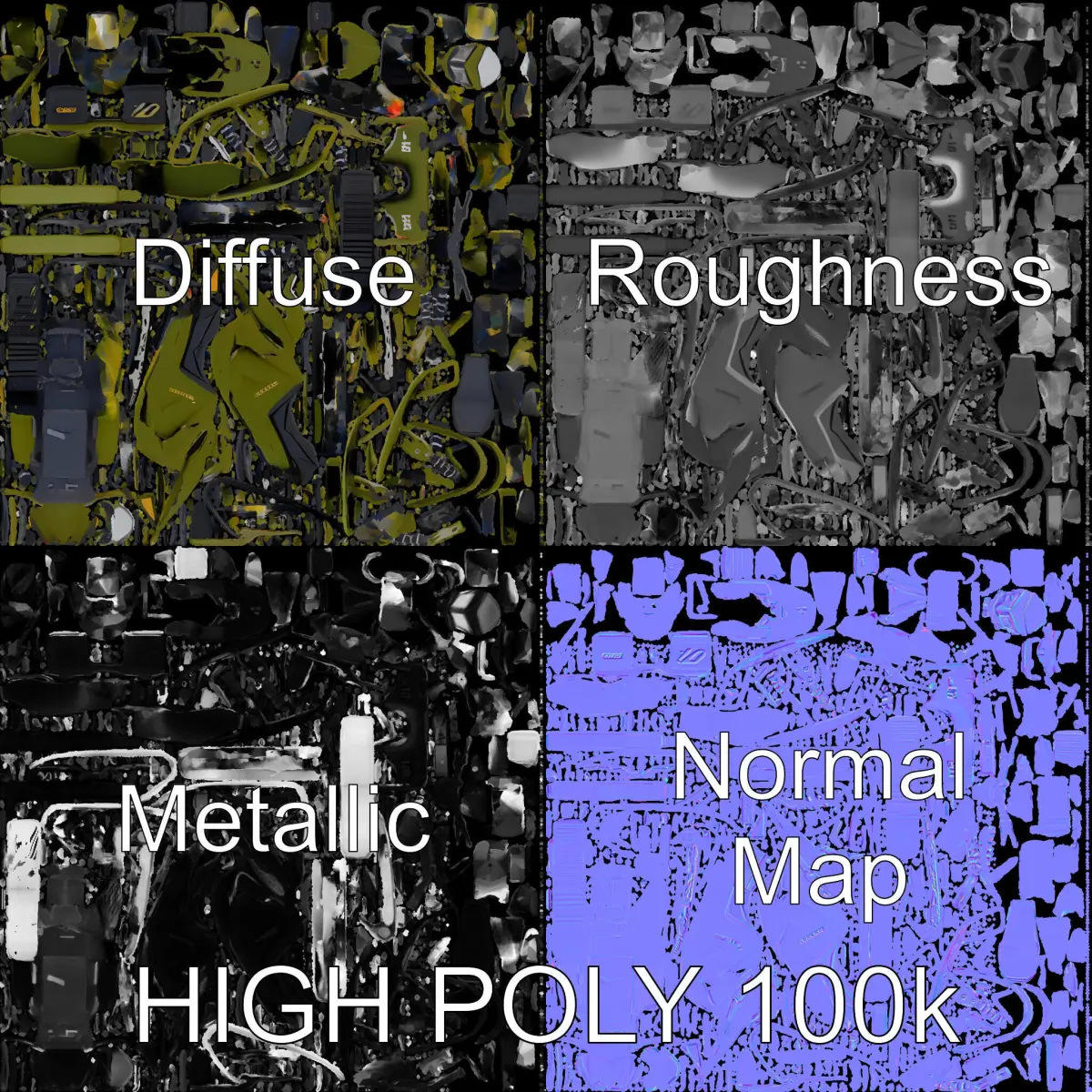 This high-performance snowmobile model pack offers 3 levels of detail: low-poly (1000 triangles) for mobile applications, middle-poly (10,000 triangles) for environments, and high-poly (100,000 triangles) for production rendering. It's perfect for animation, video games, simulations, virtual reality, and interactive presentations. Enjoy realistic and accurate depictions thanks to PBR, Diffuse, NormalMap, and reflection/roughness/metallic textures. Models are meticulously unwrapped with no overlapping UVs. Textures are 4096x4096 in size, ensuring high quality in any context.