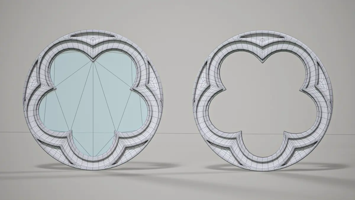 High poly, hard surface model of simple round Gothic window, radius 0.25 m. Subdivided with one iteration, ready for further subdivisions. You can add more iterations if you need. 1st model - different sides frame with glass. 2nd - symmetrical empty frame