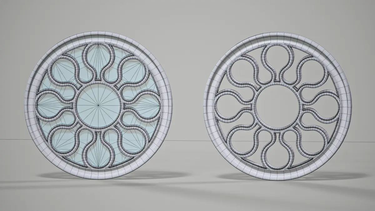 High poly, hard surface model of simple round Gothic window, radius 0.25 m. Subdivided with one iteration, ready for further subdivisions. You can add more iterations if you need. 1st model - different sides frame with glass. 2nd - symmetrical empty frame