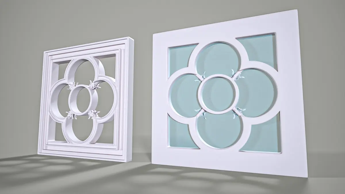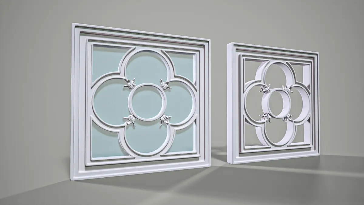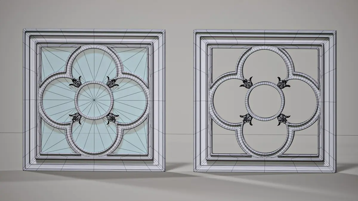 High poly, hard surface model of simple square Gothic window, with sircular pattern. Dimensions 0.5x0.5 m. Subdivided with one iteration, ready for further subdivisions. 1st - model with glass. 2nd - empty frame with equal sides