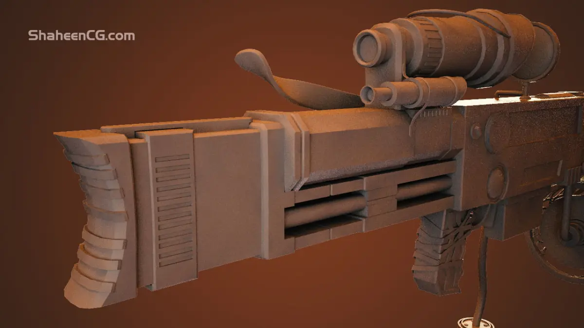 Highpoly Steampunk Rifle .for high resolution renders and close up renders .every thing is grouped and named friendly , also the concept for the rifle is mine .all mesh are uv mapped and ready to texture .