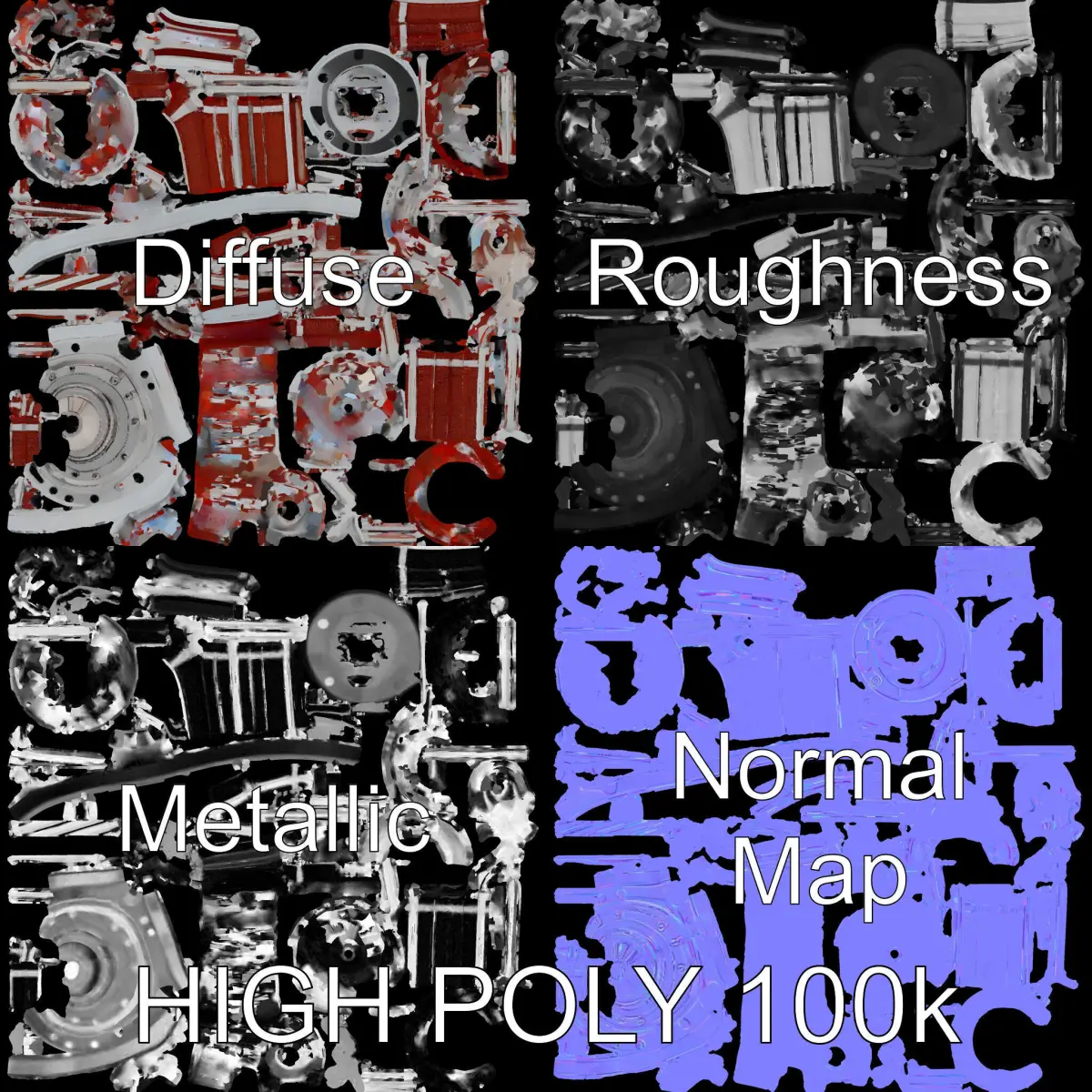 This High-Precision Electric Motor Model Pack features 3 levels of detail: low-poly for mobile at 1000 triangles, middle-poly for environment at 10,000 triangles, and high-poly perfect for production rendering at 100,000 triangles. Ideal for engineering visualizations, educational models, and detailed rendering projects. The PBR textures include Diffuse, NormalMap, and reflection/roughness/metallic maps, all at 4096x4096 resolution, ensuring high-quality visuals compatible with modern engines like 3ds Max, Maya, Unity, and Unreal Engine. Each model is accurately unwrapped with no overlapping UVs, enhancing the realism and fidelity of your projects.