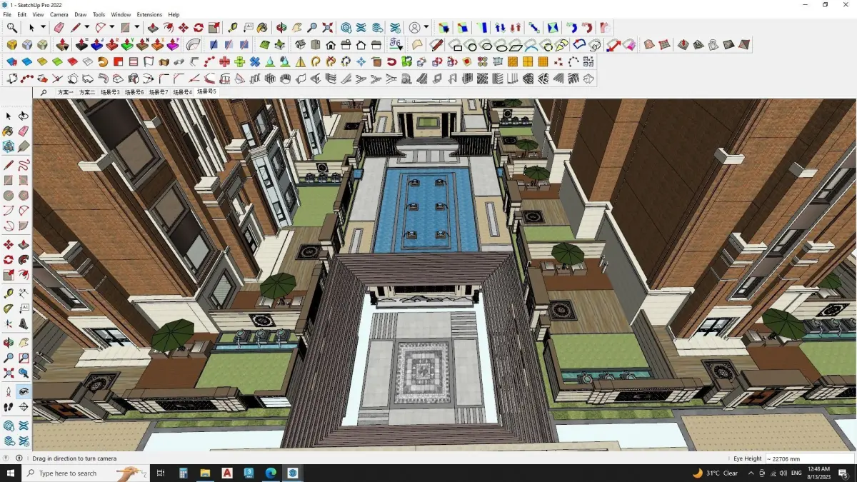 Skyscrapper sketchup model includeGatehouseclassical Boundary walllandscapewater fountainclassical shopping mallapartmentsSitting spaces, pargola, semi covered area