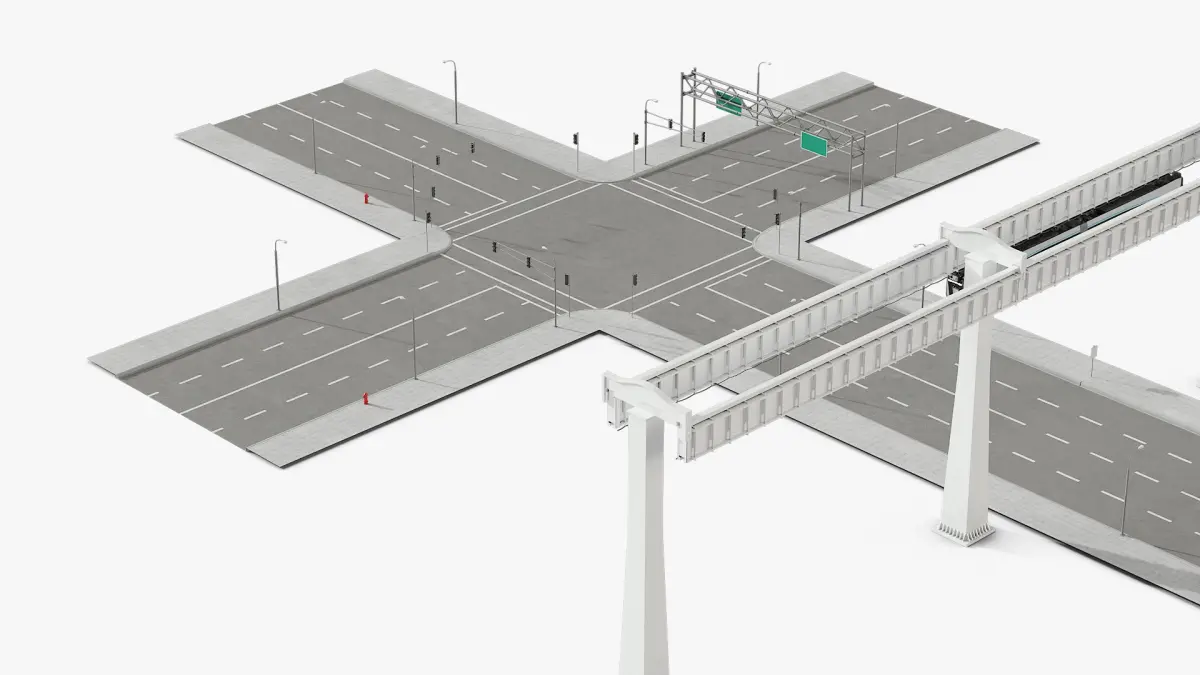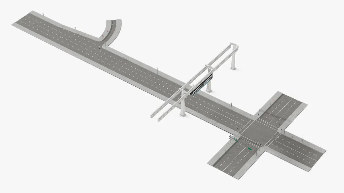 Highway and Suspended Monorail Air Train is a high quality, photo real 3d model that will enhance detail and realism to any of your rendering projects. The model has a fully textured, detailed design that allows for close-up renders, and was originally modeled in 3ds Max 2020 and rendered with V-Ray. Renders have no postprocessing!