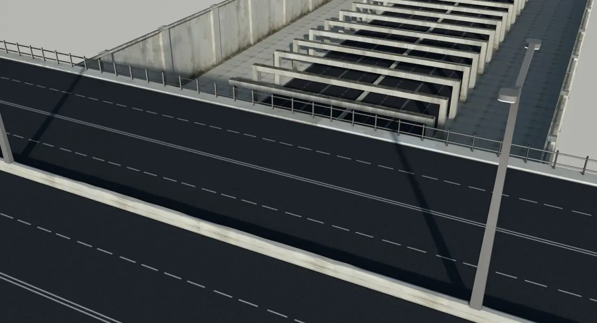 Low poly highway with sun and sky light rendered with Cinema 4d