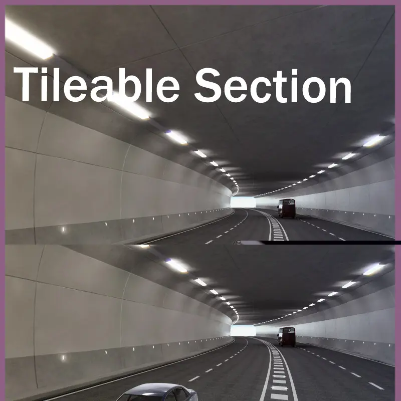 Highway tunnel section tileable along a path deform with a displacement of the same for the length of the section, so you can build tunnels infinite and desired shape, modeled with Max 8 and Vray materials. Includes materials and maps. Cars not included.