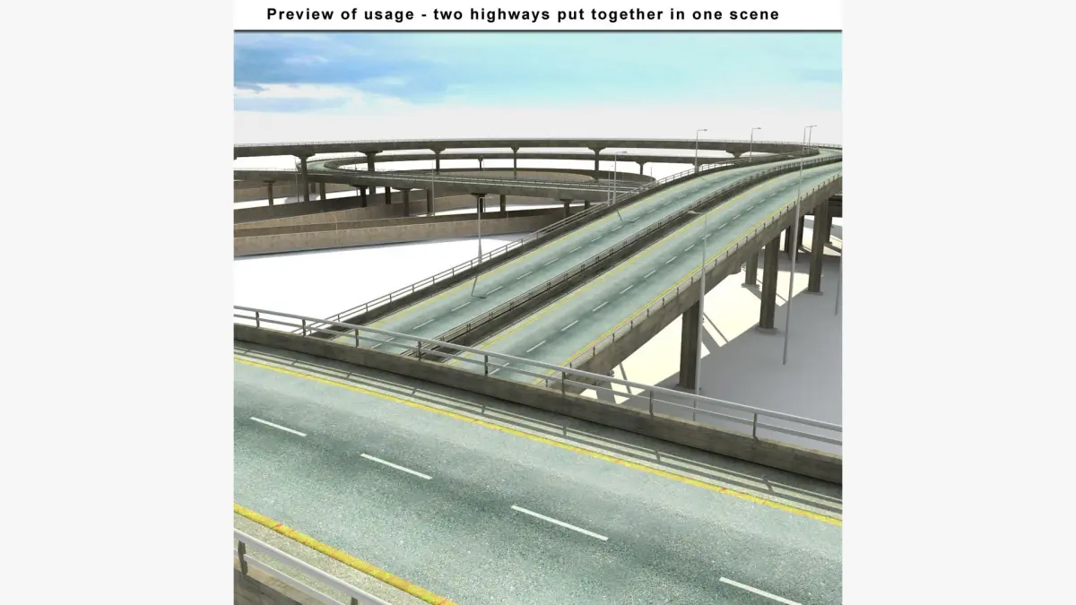 This is collection of fully textured models which you can build complex constructions of highway, bridges, overpass etc.