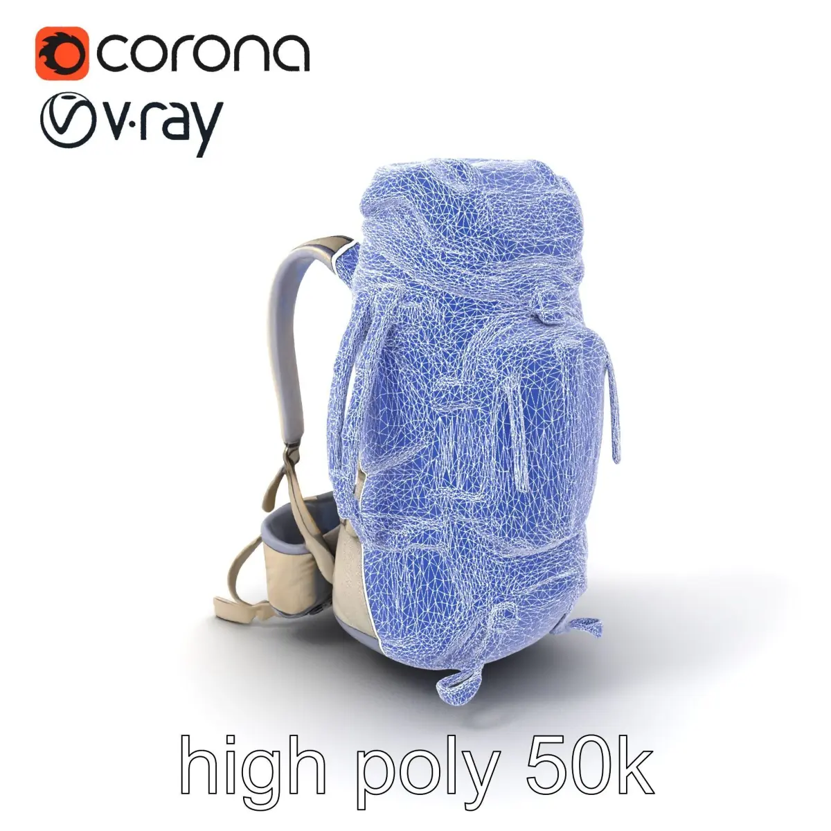 This model is perfect for simulating outdoor adventure scenarios, product visualizations, or virtual reality experiences related to hiking gear. The backpack model features padded back panels, adjustable shoulder straps, and trekking pole attachments, making it realistic and versatile.