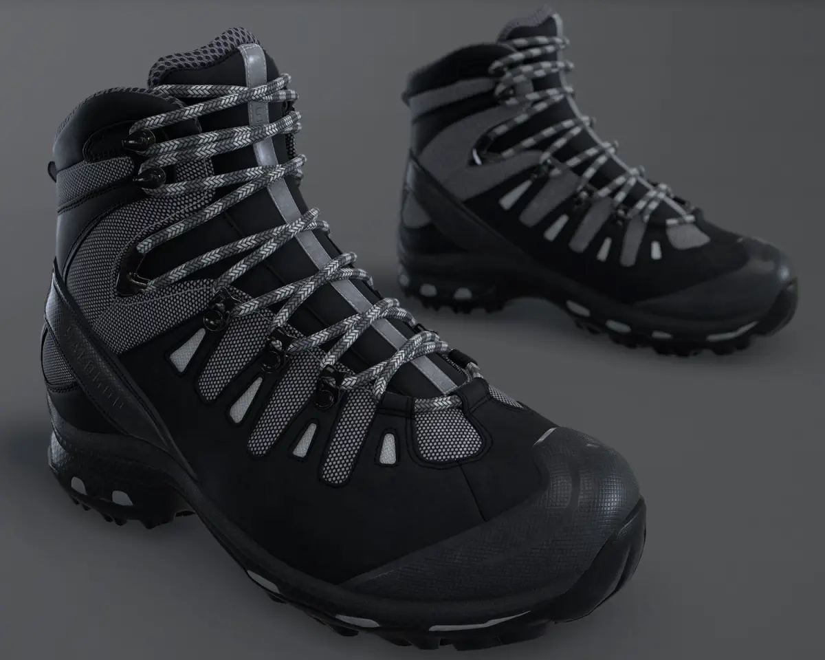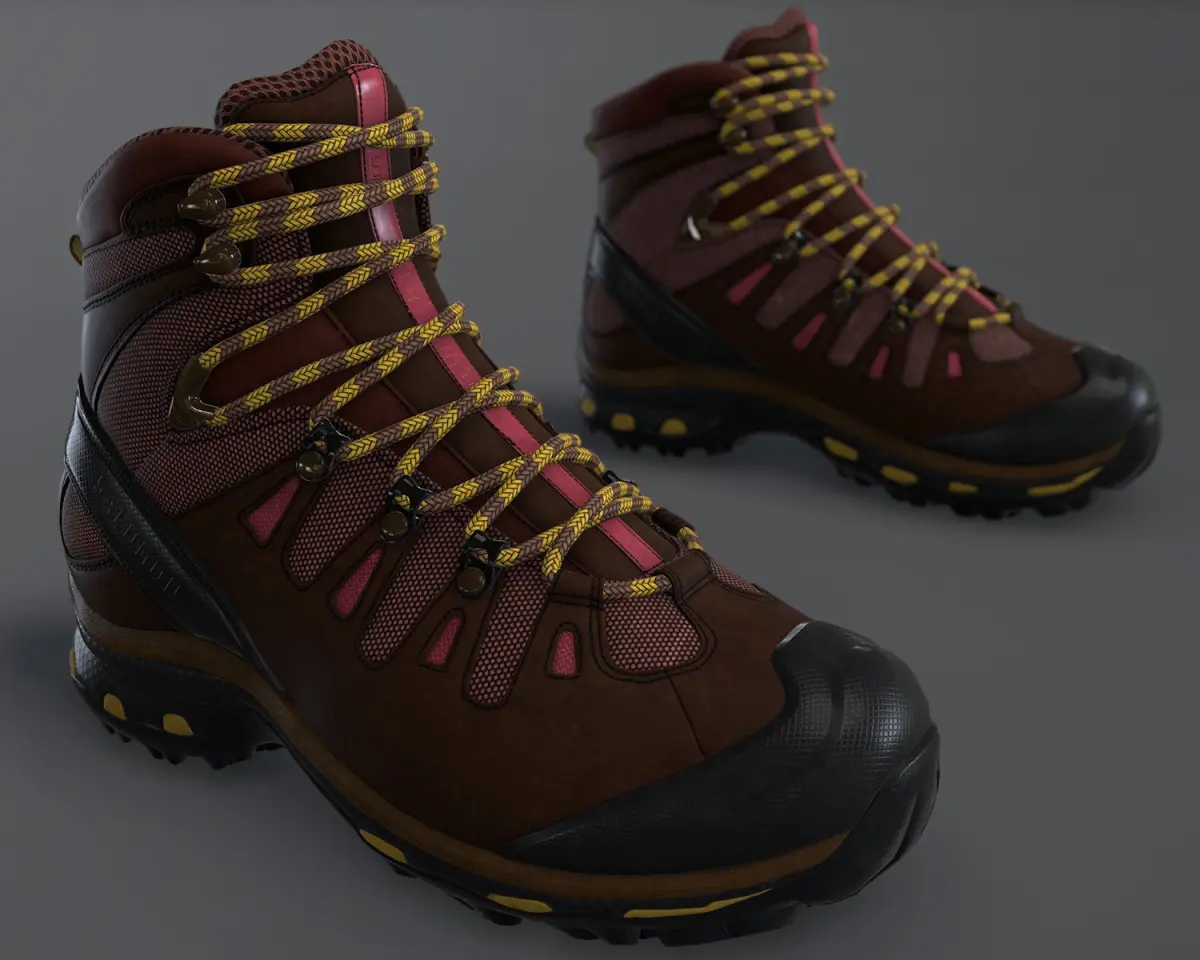 Hiking Boot High QualityJPG textures (for challenge)Extra textures : TGAClean topologyLeft boot and Right boot textures2 color Textures with logo and with non logo 4 K texturesReal time textures with marmoset tool-bag fileV-RAY reflect mapDiffuse - Normals - Spec - Gloss -Roughness - 2 color - AO - V.ray reflect map