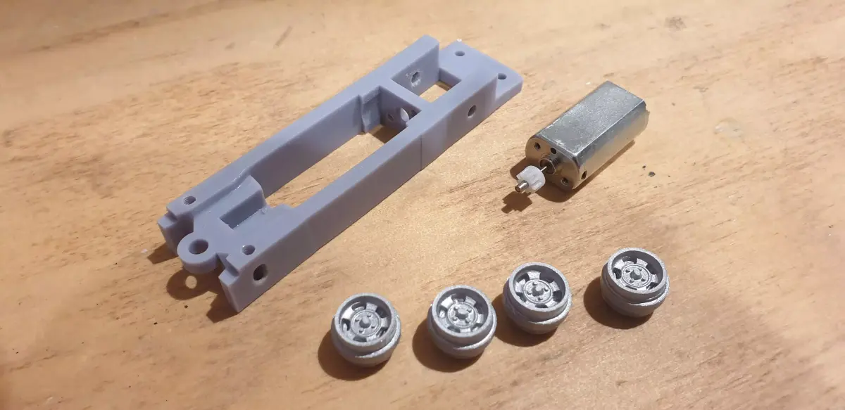 These are ready to print slot car files for a Hillman Imp.I have uploaded two different chassis depending on the type of wheels. One chassis suits 10mm wide wheels and the other suits the 'Pendle Slot Racing' PCS-WTP13 aluminim windows. The minilite wheel inserts are 10mm and fit PCS-WTP13 as photographed.The chassis is designed for a slimline motor shown in the photograph. The chassis is designed to have brass sleevesaround the axles as bearings and are adjustable using a 3mm grub screw.