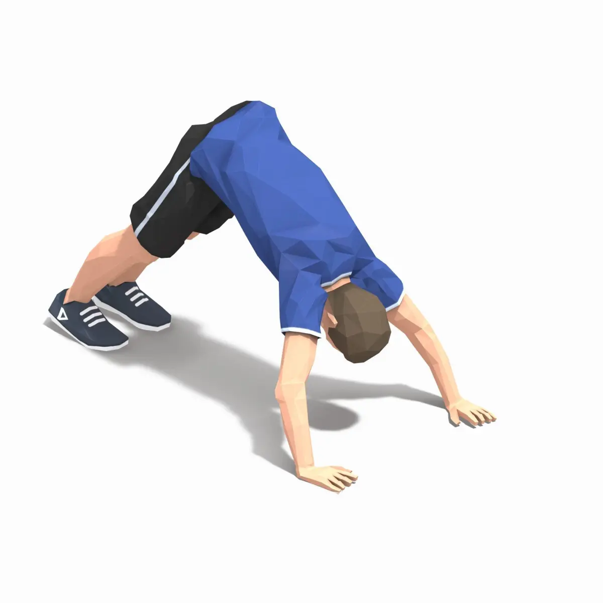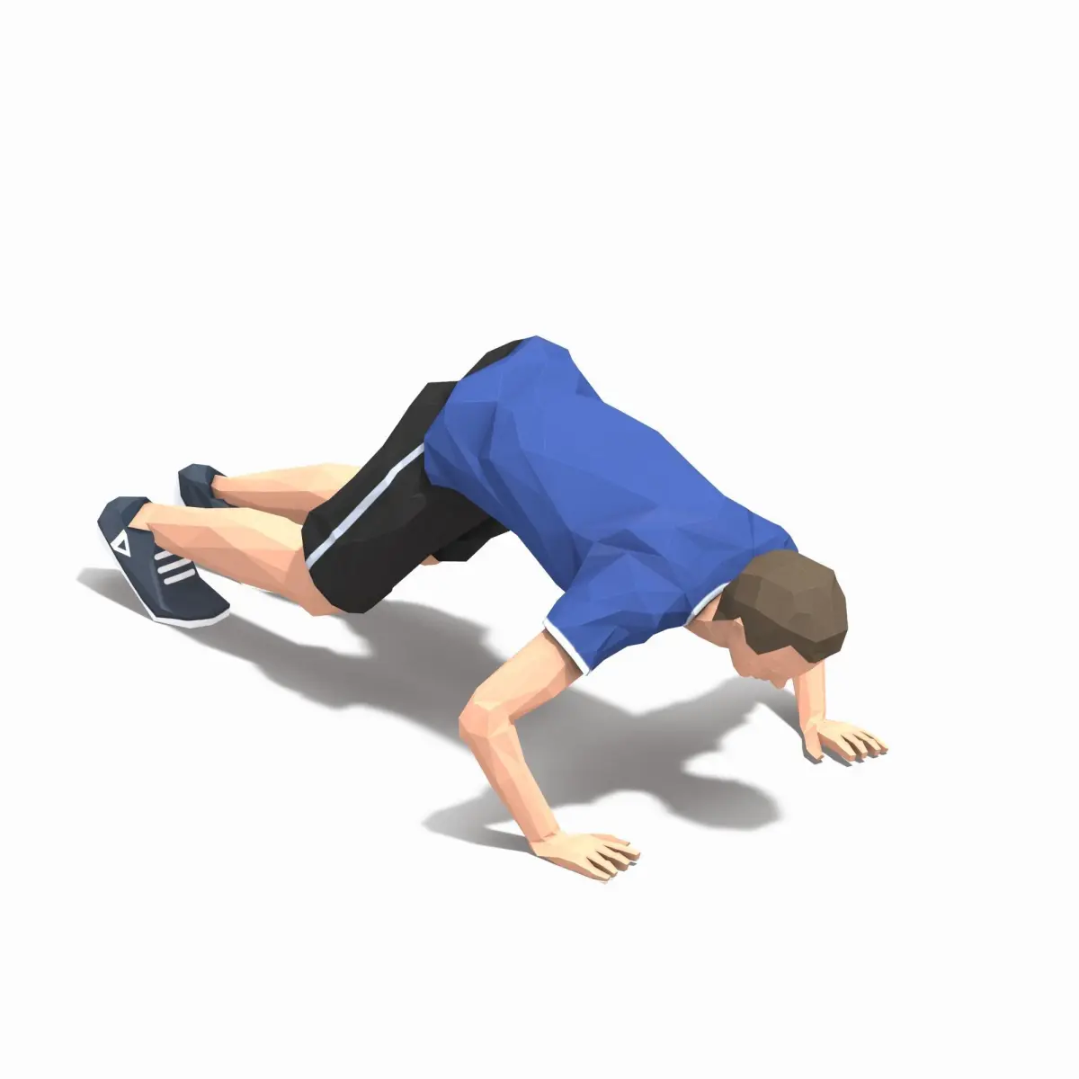 Animations of exercise Man Low poly3d model in flat surface style.Animation created in CAT system and exported to FBX files for loop sequence.Extra textures as bonus