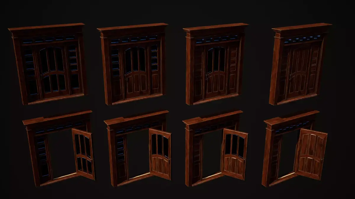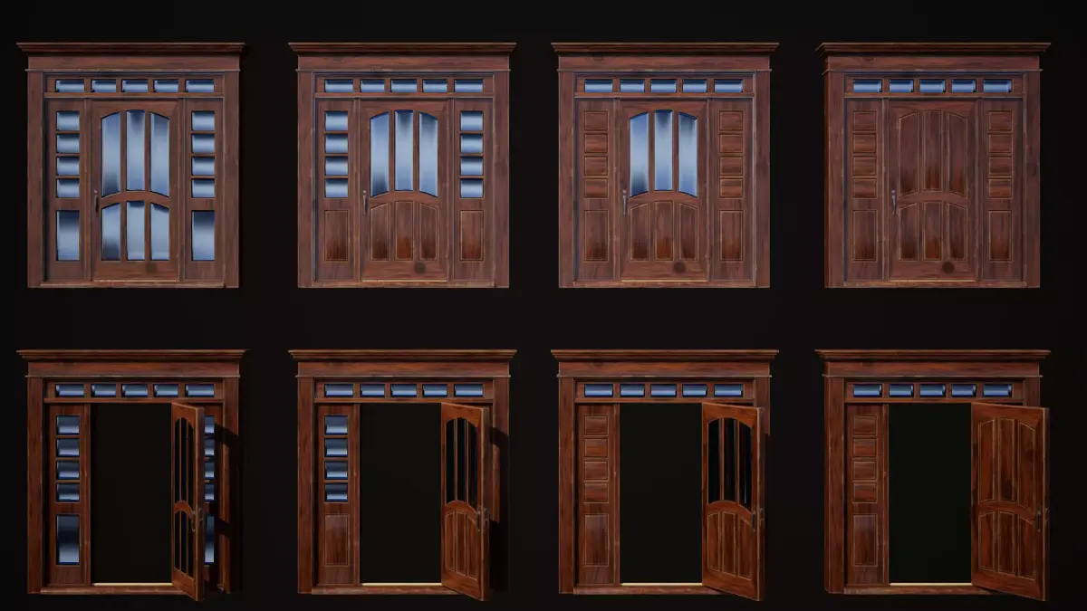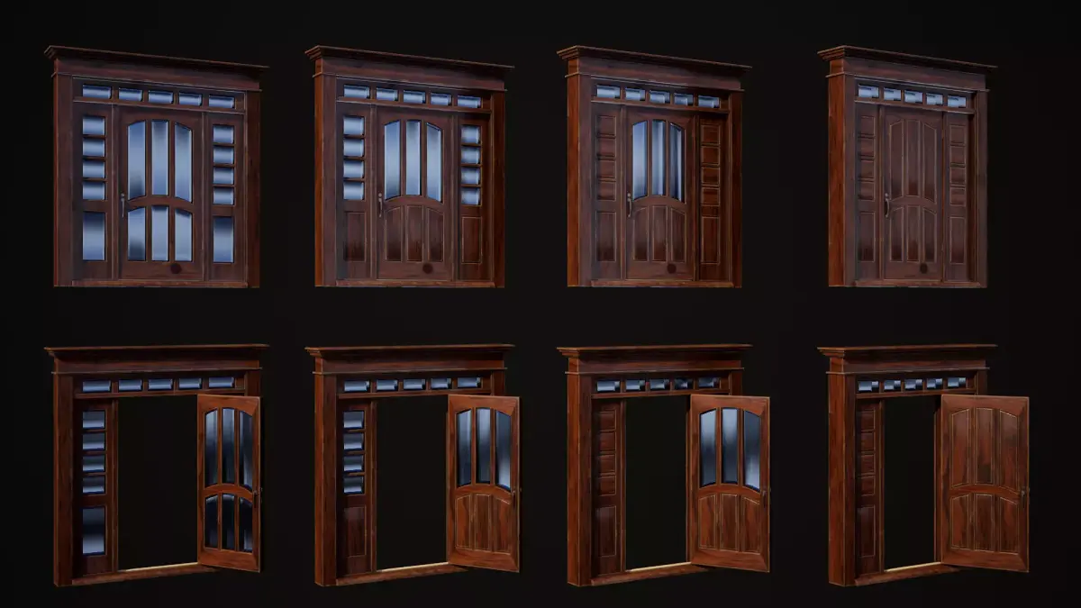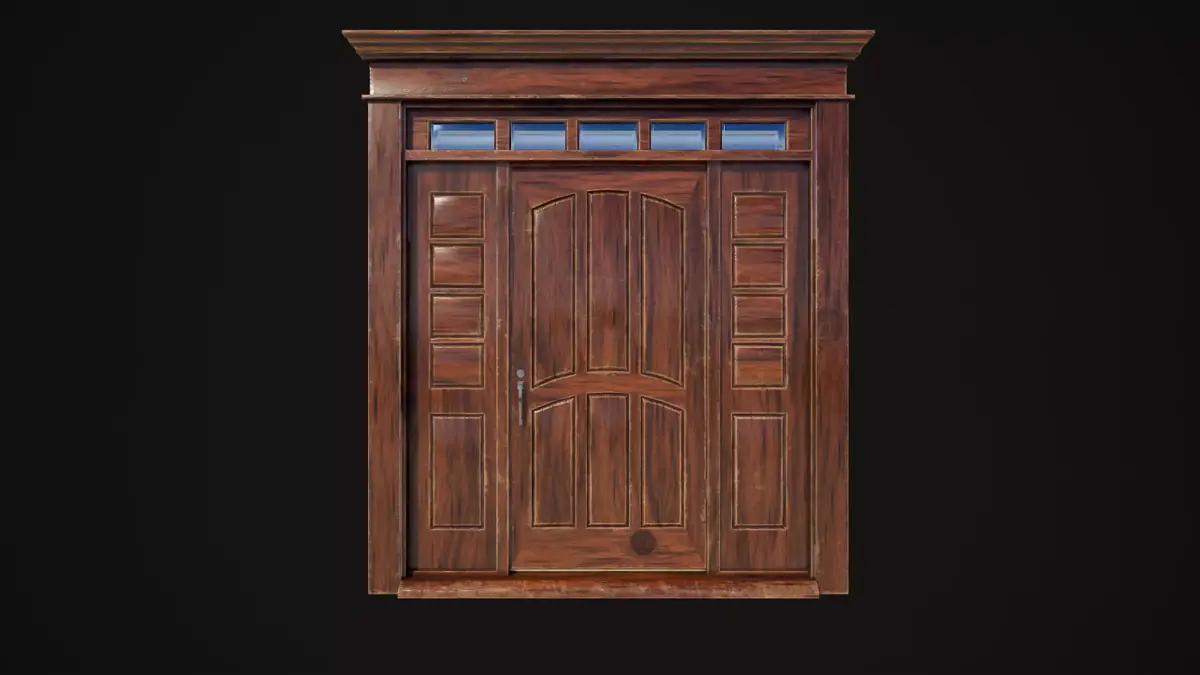 Hinged door highpoly 3d model with glass and realistic PBR materials in resolution 4096x4096px