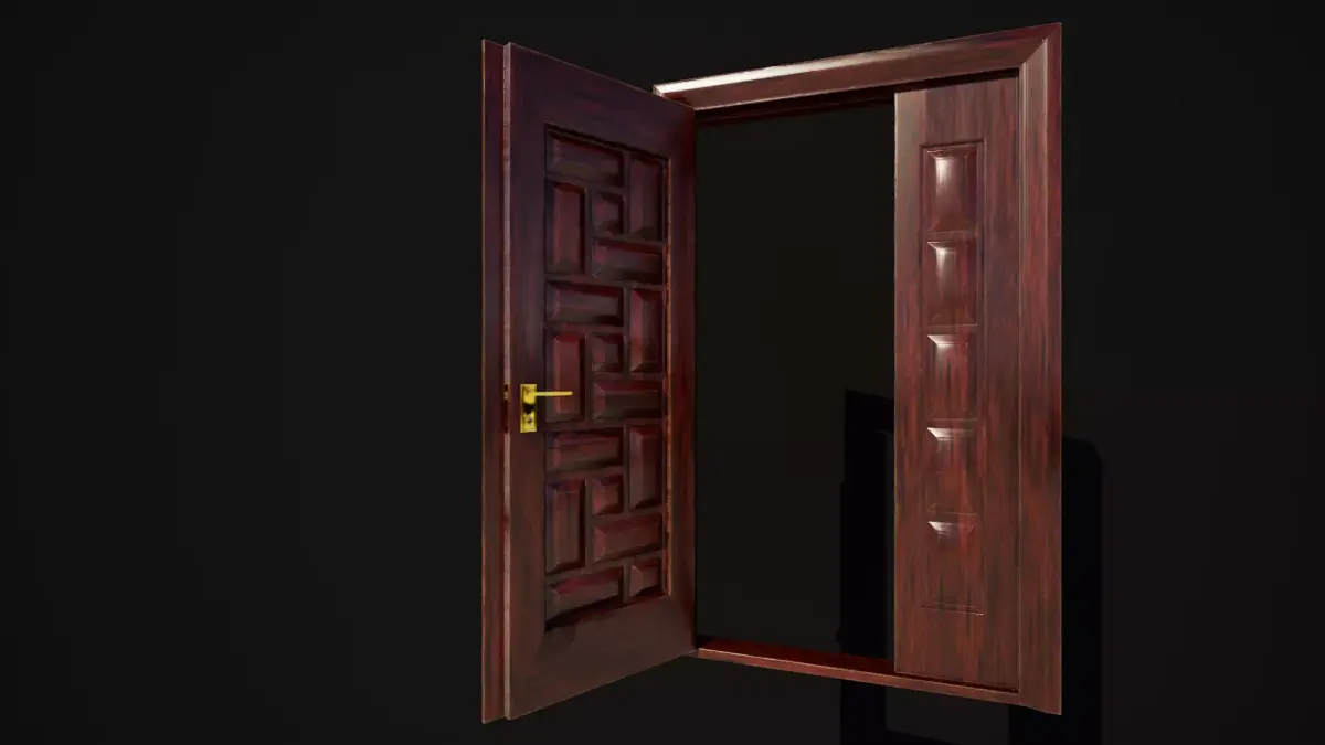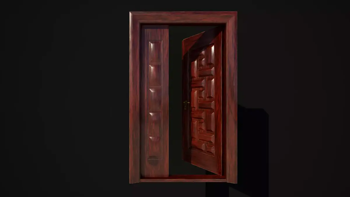 Hinged door highpoly 3d model with glass and realistic PBR textures in resolution 4096x4096px
