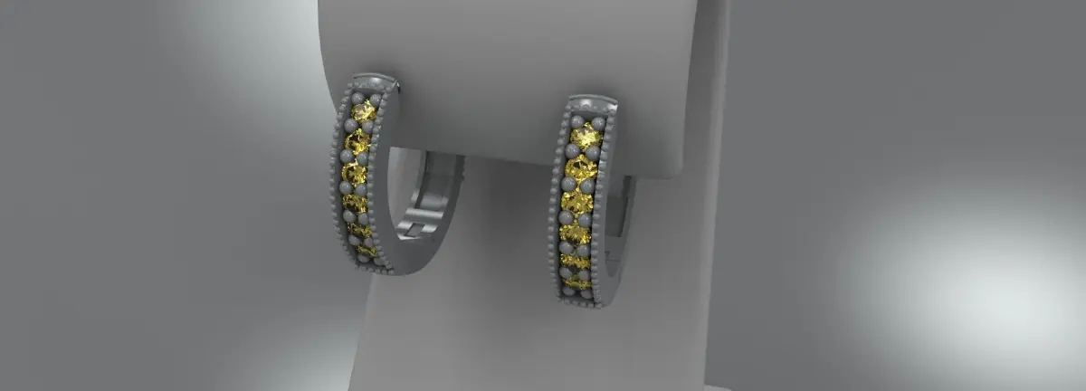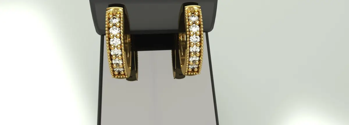 Hinged ladies earring model with bead and bright cut round stones for sale. The model is in two pieces and would need to be printed and cast that way. Features 7 round 2mm stones.