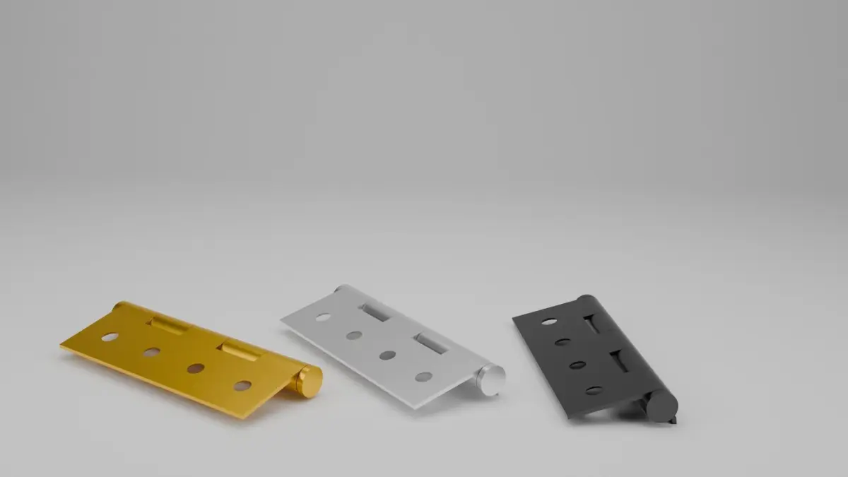 This is a 3D model of hinges which is commonly used in Doors and Windows and this model is fully created in blender. No textures are used only materials are used and this is available in 3 materials. The images are rendered using cycles engine. This model is created by XD Group