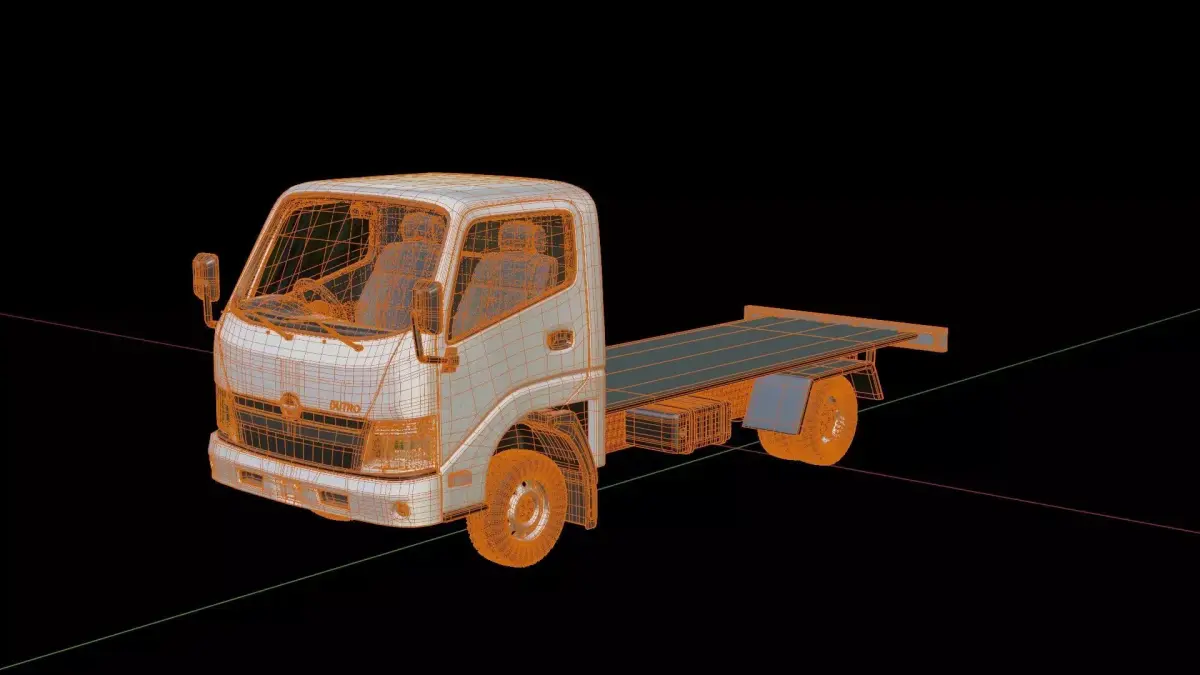 3D model of the Hino Dutro Cab ChassisCreated in Blender and already rigged.The mesh of the model in the Blender file format is mainly quads.