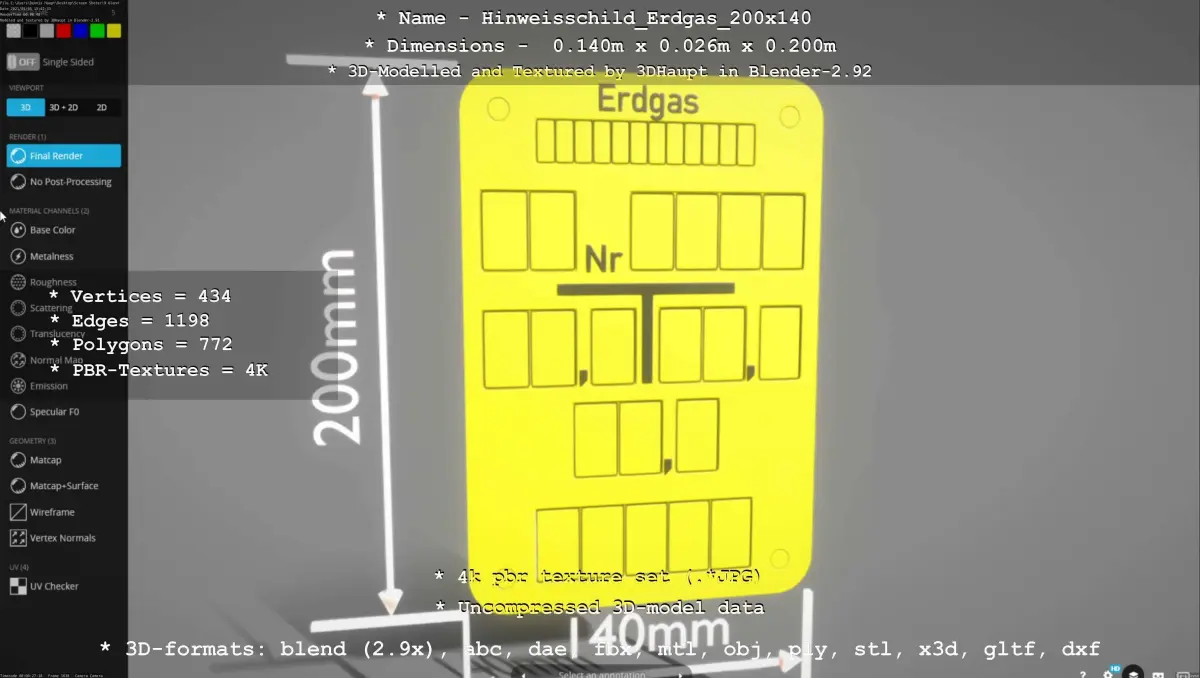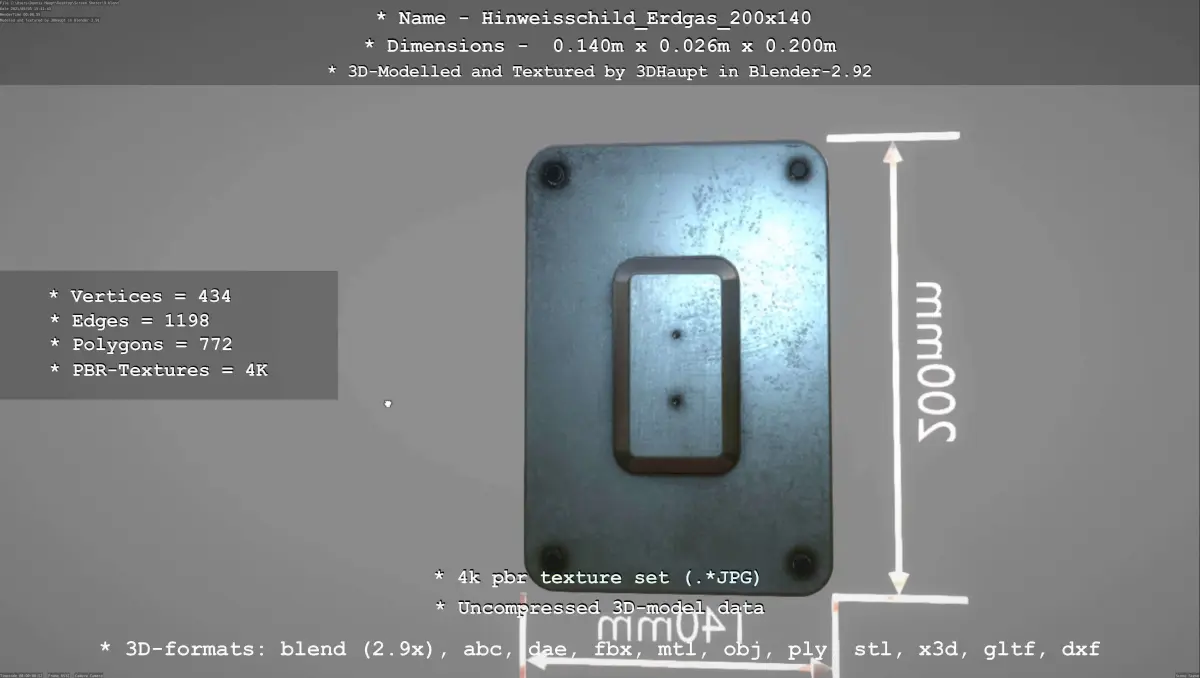 BLEND (Blender, filesize: 37.6 MB), OBJ (OBJ, filesize: 32.4 MB), FBX (Autodesk FBX, filesize: 32.5 MB), GLTF (glTF, filesize: 32.4 MB), ABC (Alembic, filesize: 32.4 MB), DAE (Collada, filesize: 32.4 MB), DXF (DXF, filesize: 32.4 MB), STL (Stereolithography, filesize: 32.4 MB), TEXTURES (Textures, filesize: 32.4 MB), JPG (JPG, filesize: 32.4 MB), PLY (Ply, filesize: 32.4 MB)