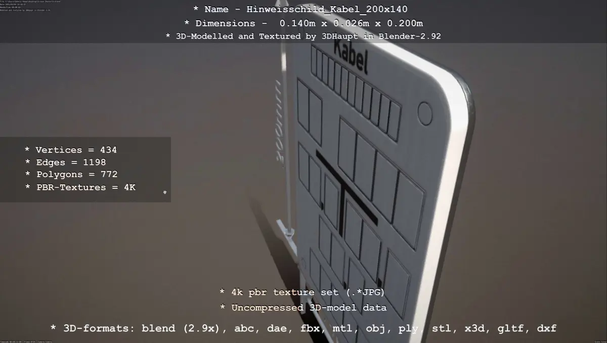 BLEND (Blender, filesize: 44.2 MB), OBJ (OBJ, filesize: 38.9 MB), FBX (Autodesk FBX, filesize: 38.9 MB), GLTF (glTF, filesize: 38.9 MB), ABC (Alembic, filesize: 38.9 MB), DAE (Collada, filesize: 38.9 MB), DXF (DXF, filesize: 38.9 MB), STL (Stereolithography, filesize: 38.9 MB), TEXTURES (Textures, filesize: 38.9 MB), JPG (JPG, filesize: 38.9 MB), PLY (Ply, filesize: 38.9 MB)
