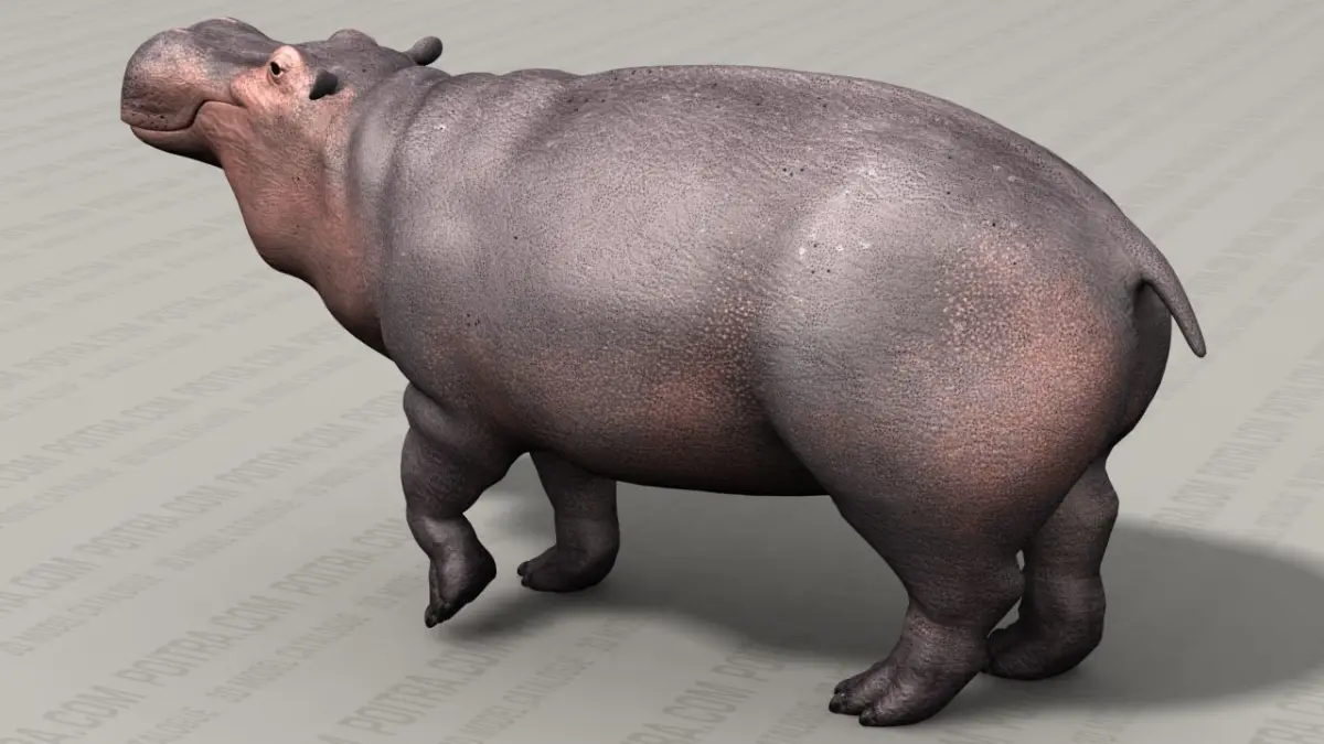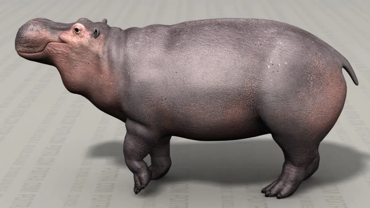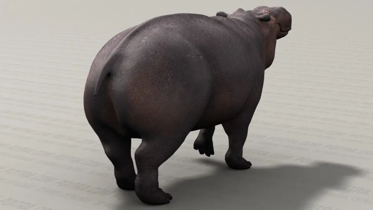 3D Model Hippo (Hippopotamus Amphibius) Adult Male (Pose 1) by POITRA Visual (Textured 3D Model). Pose 1 is an individual hippo model taken from our 4 Pose Hippopotamus Amphibius Collection (sold separately). The common hippopotamus or river horse has been around since prehistoric times and inhabits the rivers, lakes, and swamp wetlands of Africa. Our 3D model hippo's body and eyes are separate 3d objects (see rendered images).