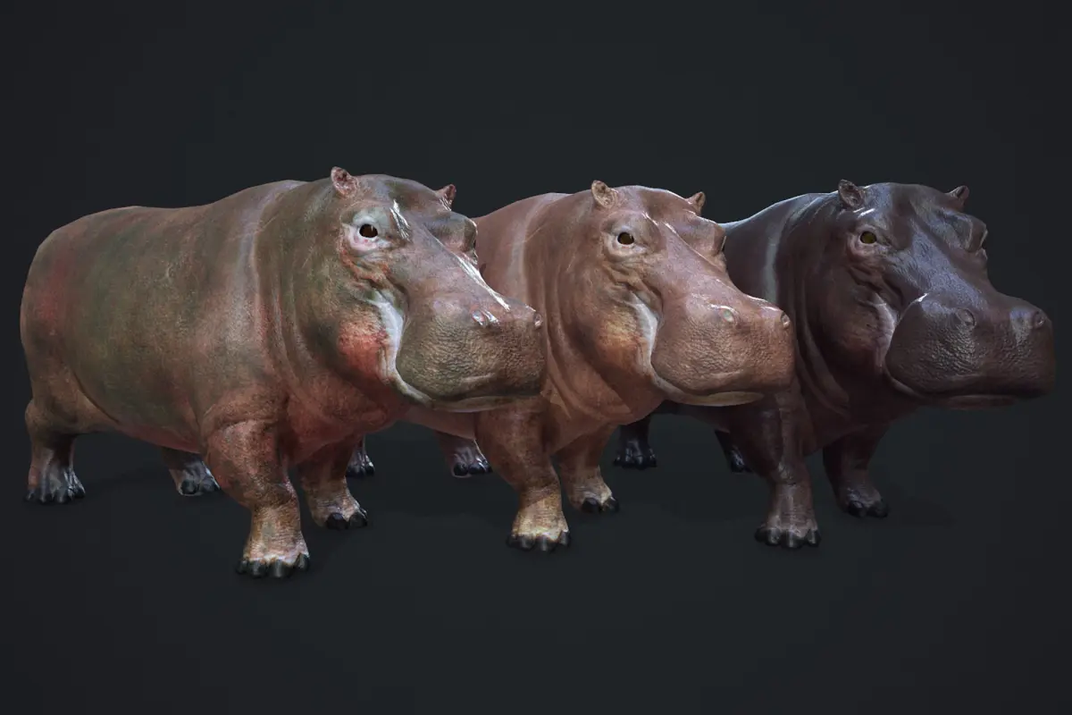 This pack includes animated hippopotamus with 3 skins ready to populate your savanna environment.