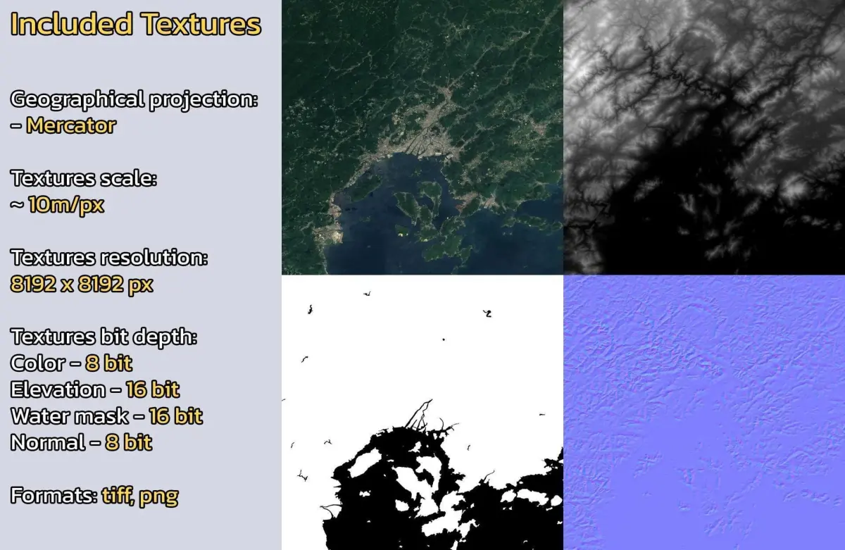 - Textures resolution: ~10m/px