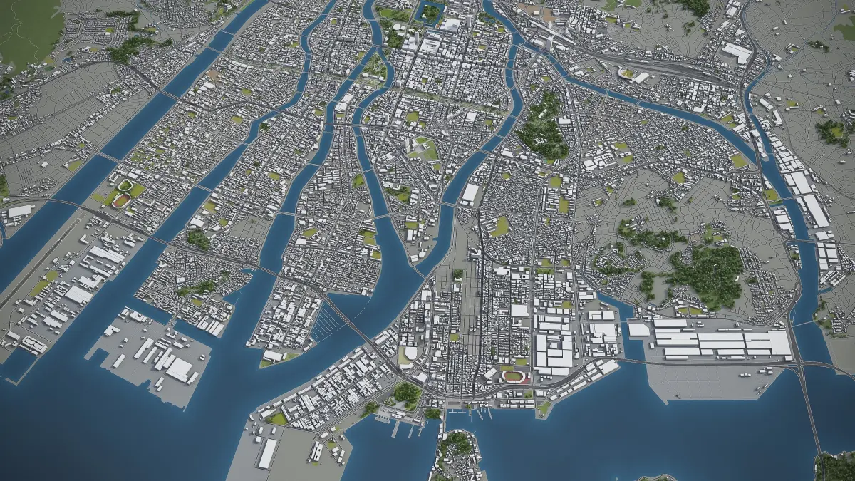 - Full city extents up to 100 x 100 km — or crop to an area of interest for better format compability and scene performance