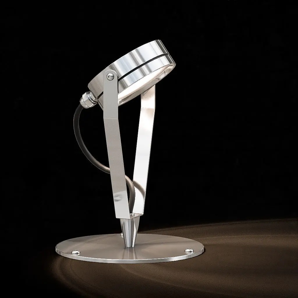 The Spot Luxpicket is an outside LED lamp entirely of 316L stainless steel (marine grade stainless steel especially adapted for sea front installations). Resistant and easy to install, this lamp is designed to effectively light up gardens : paths, trees, shrubberies, pool desks, stairs... Adjustable with its telescopic rod, its 360° swivel-and-tilt reflector, up and down reclining and its different optic angles. Its 2 fixing systems allow installation on every types of ground ( choice of picket for planting or washer for fixing).