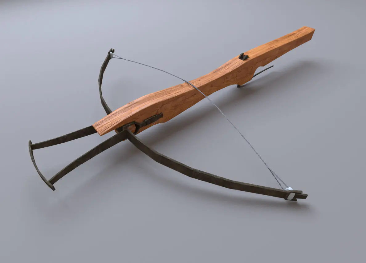 detailed 3D model of medieval crossbow. detailed and correct geometry, amazing look.