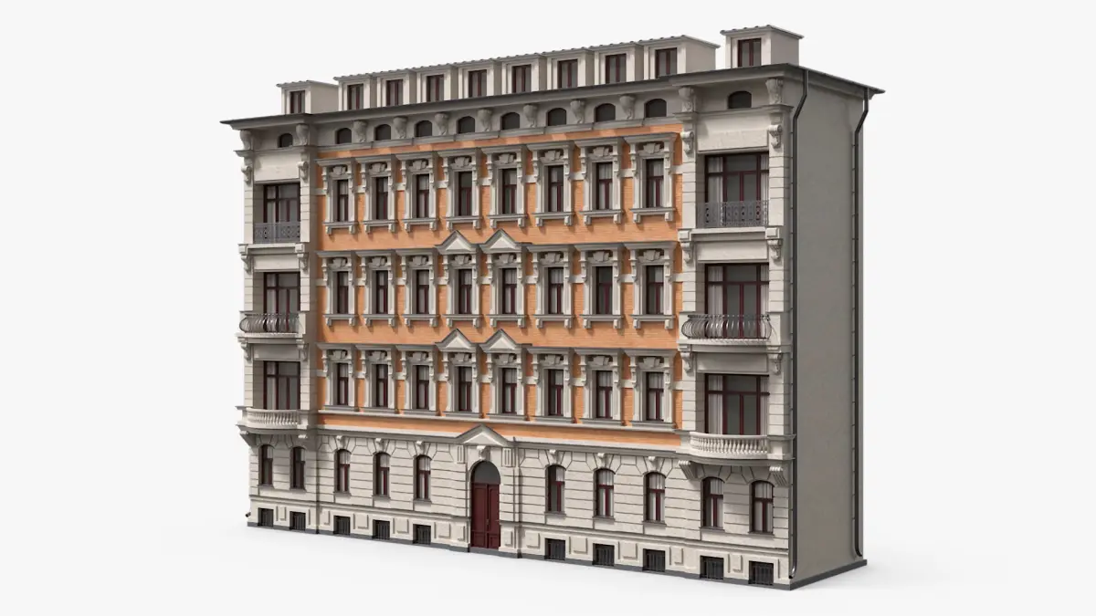 Historic European Apartment Building is a high quality, photo real 3d model that will enhance detail and realism to any of your rendering projects. The model has a fully textured, detailed design that allows for close-up renders, and was originally modeled in 3ds Max 2020 and rendered with V-Ray. Renders have no postprocessing!