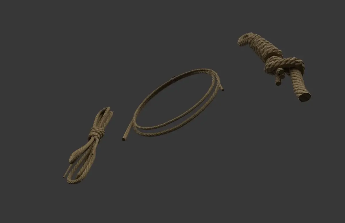 Low-poly historical accurate reconstruction of some different kind of fuse bundles used for matchlock guns. Fuses back then were cords from hemp soaked in lead acetate so they could smolder for hours. Bundles like this were carried on the bandolier.
