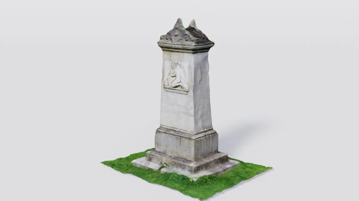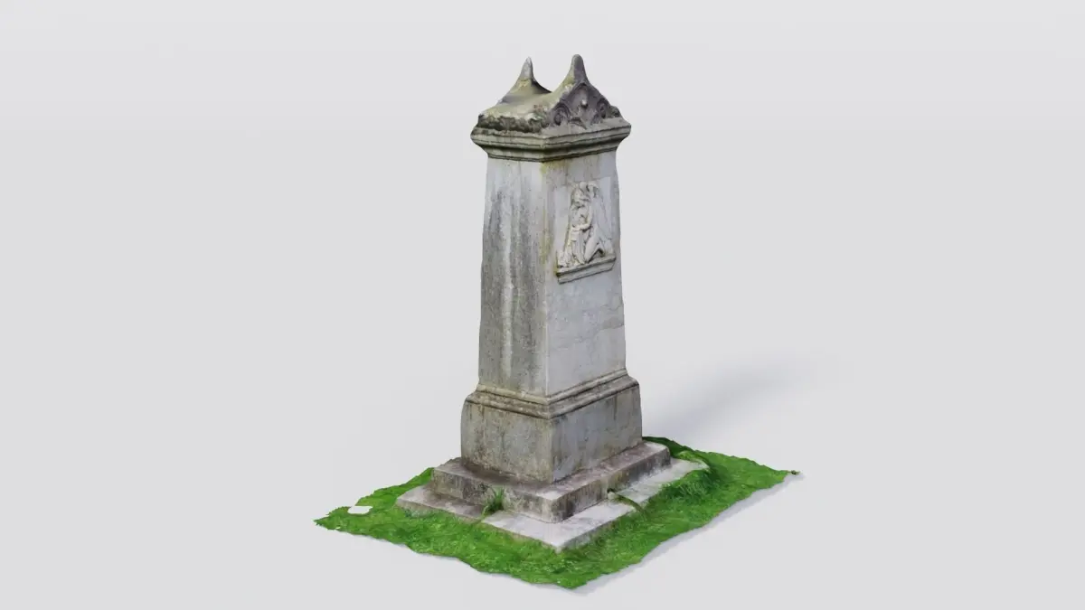 Photoscan 3D model of a historical headstone. Textures and PBR materials are included. Other file formats are x3d. This model was built in Blender3.4.