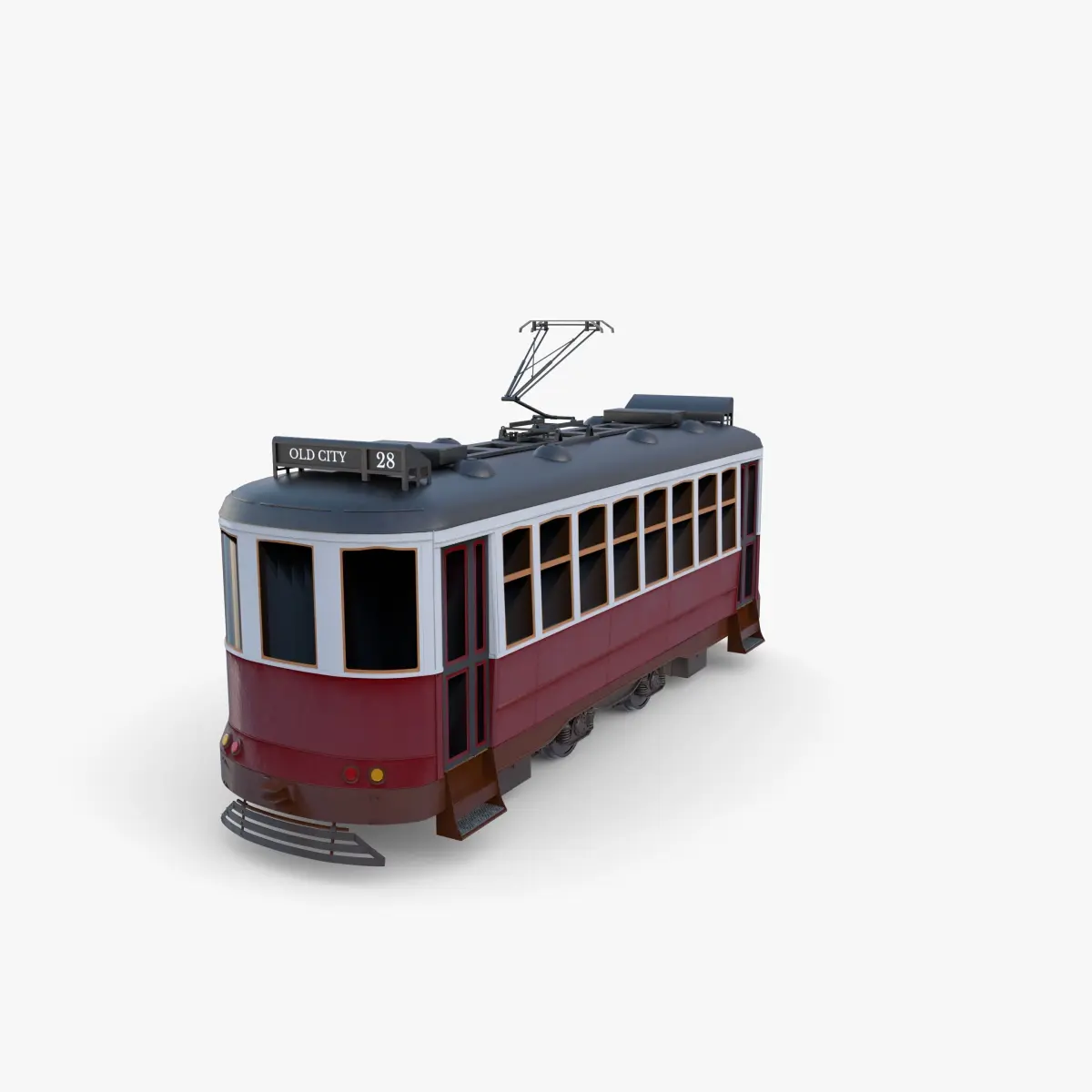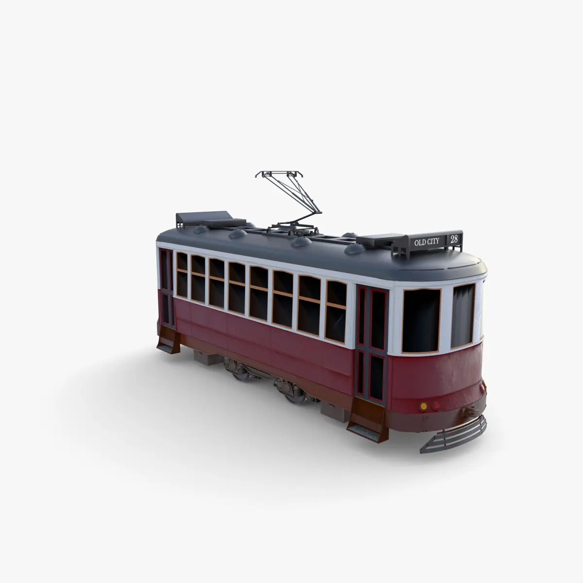 Highly detailed Historic tram 3d model rendered with Cycles in Blender, exactly as seen on attached images.